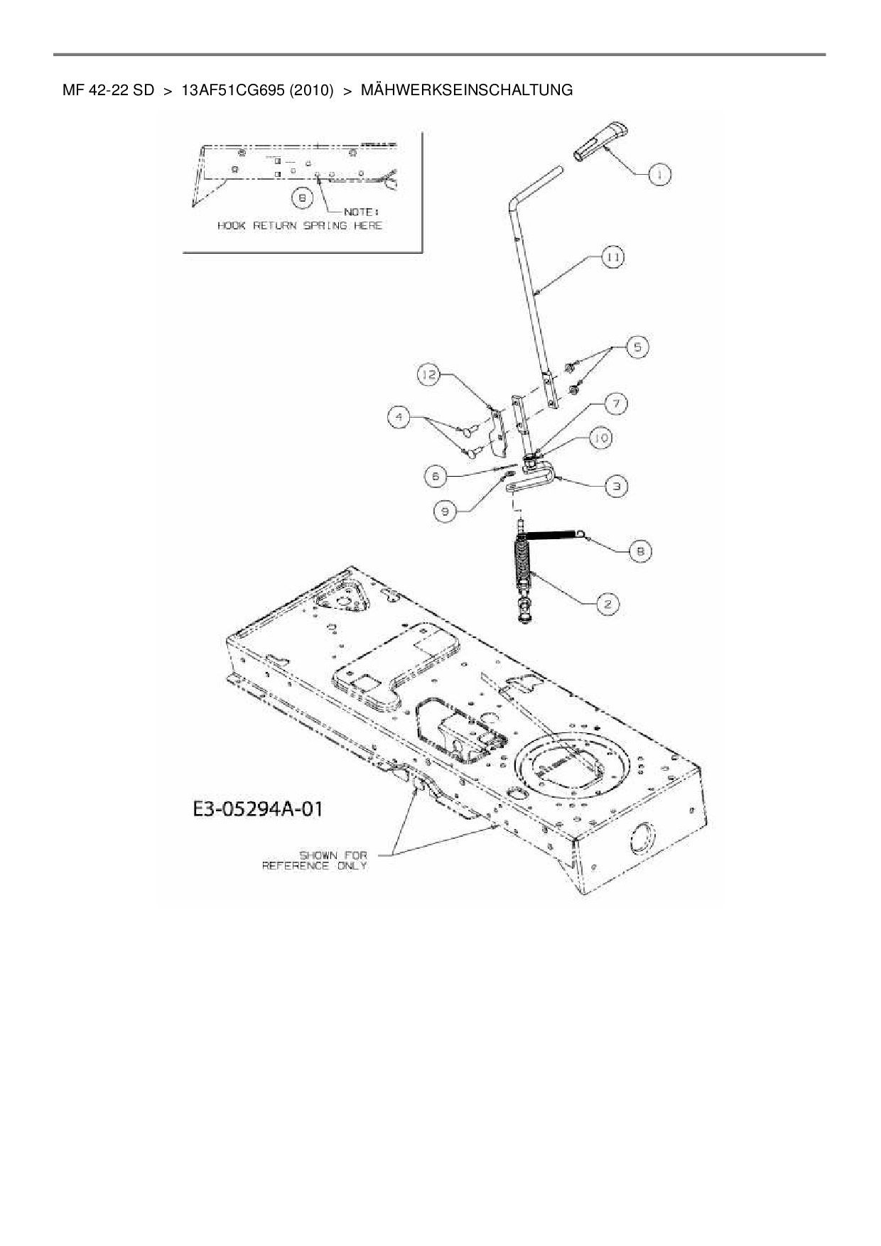 Ersatzteile für Rasentraktor Massey Ferguson MF 42-22 SD aus der Zeichnung Mähwerkseinschaltung: