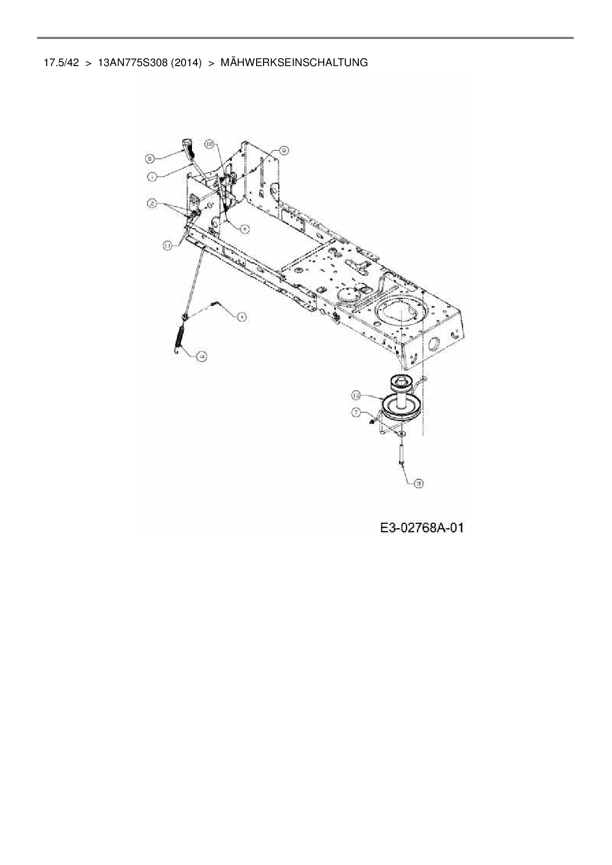 Ersatzteile für Rasentraktor MTD 17.5/42 aus der Zeichnung Mähwerkseinschaltung: