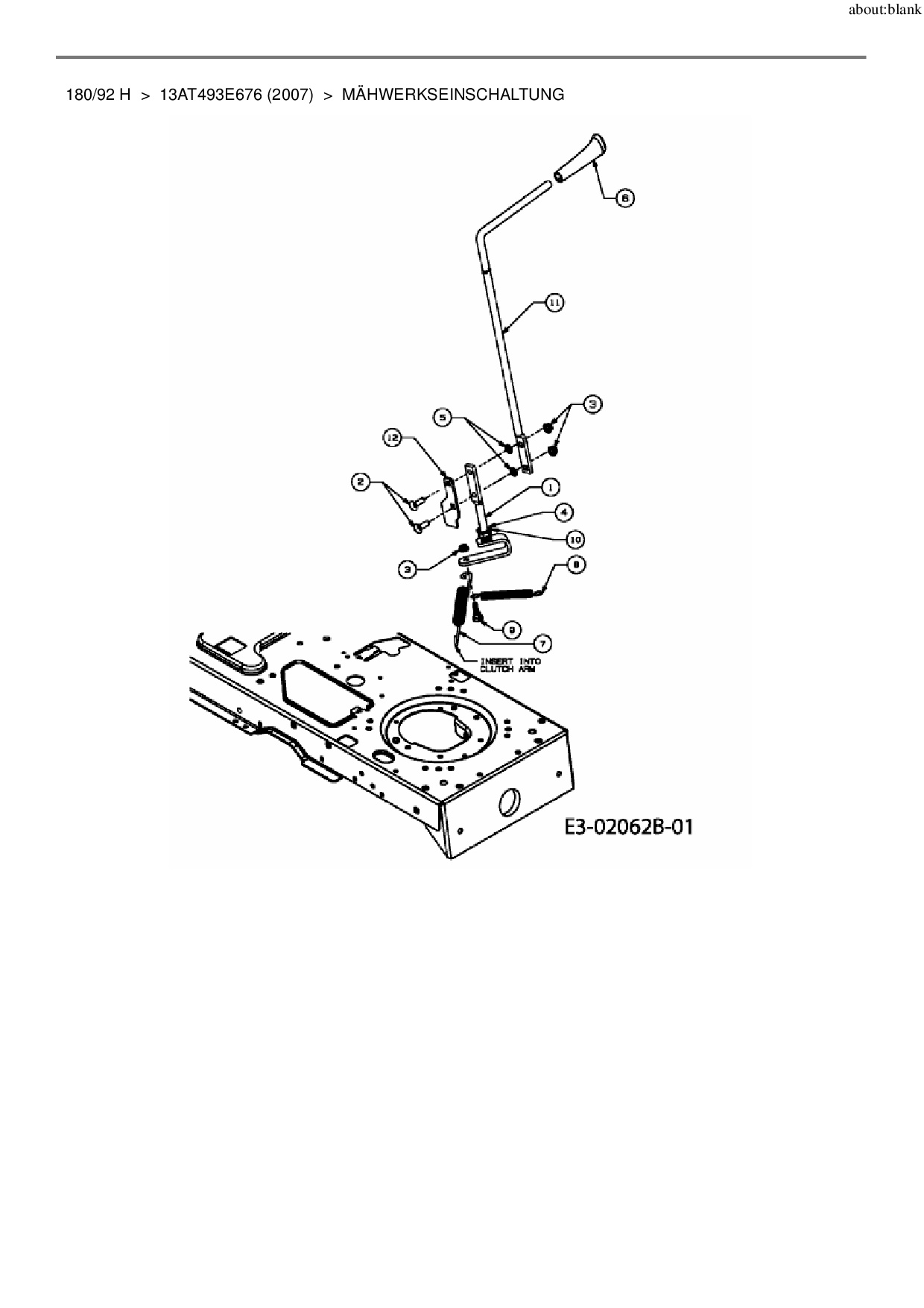 Ersatzteile für Rasentraktor MTD 180/92 H aus der Zeichnung Mähwerkseinschaltung: