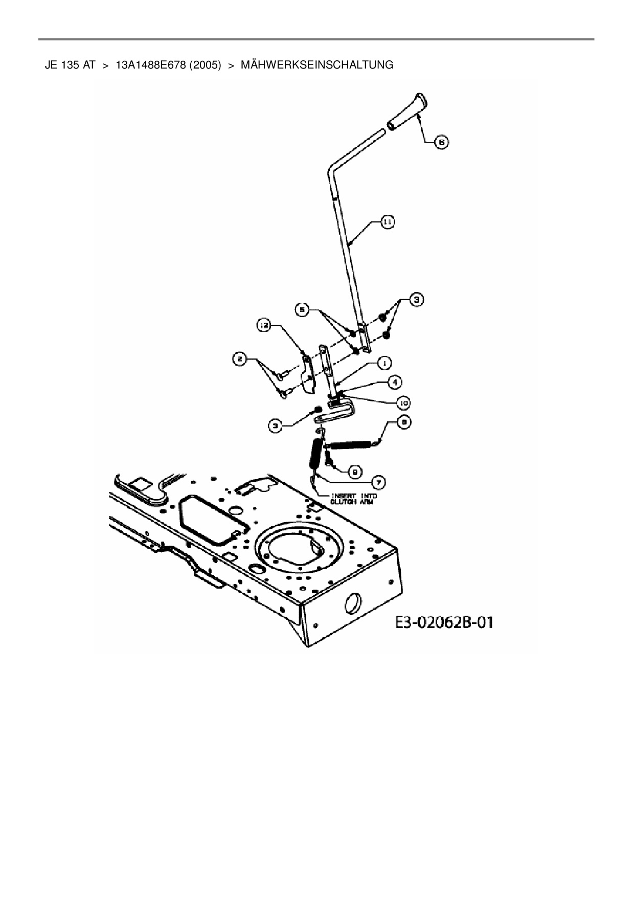 Ersatzteile für Rasentraktor MTD JE 135 AT aus der Zeichnung Mähwerkseinschaltung: