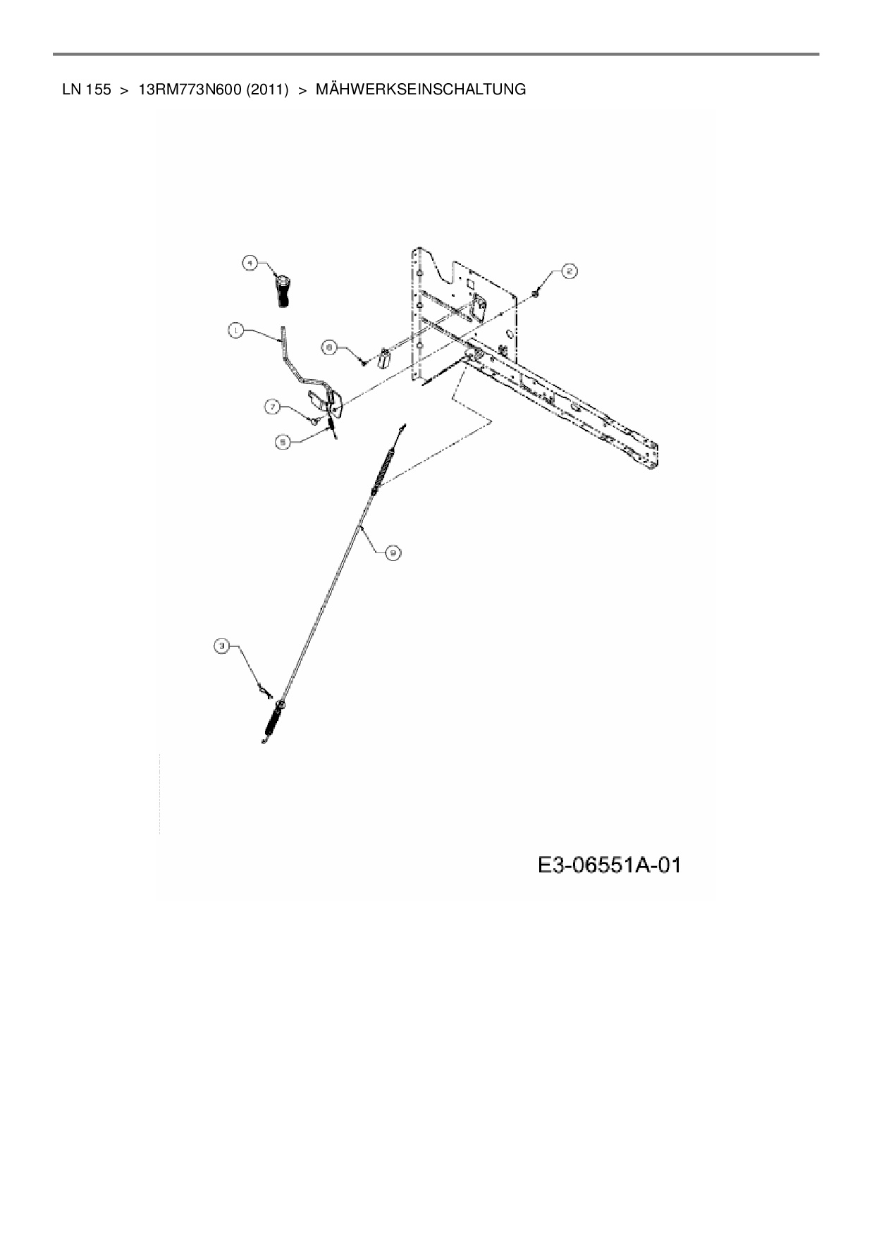 Ersatzteile für Rasentraktor MTD LN 155 aus der Zeichnung Mähwerkseinschaltung: