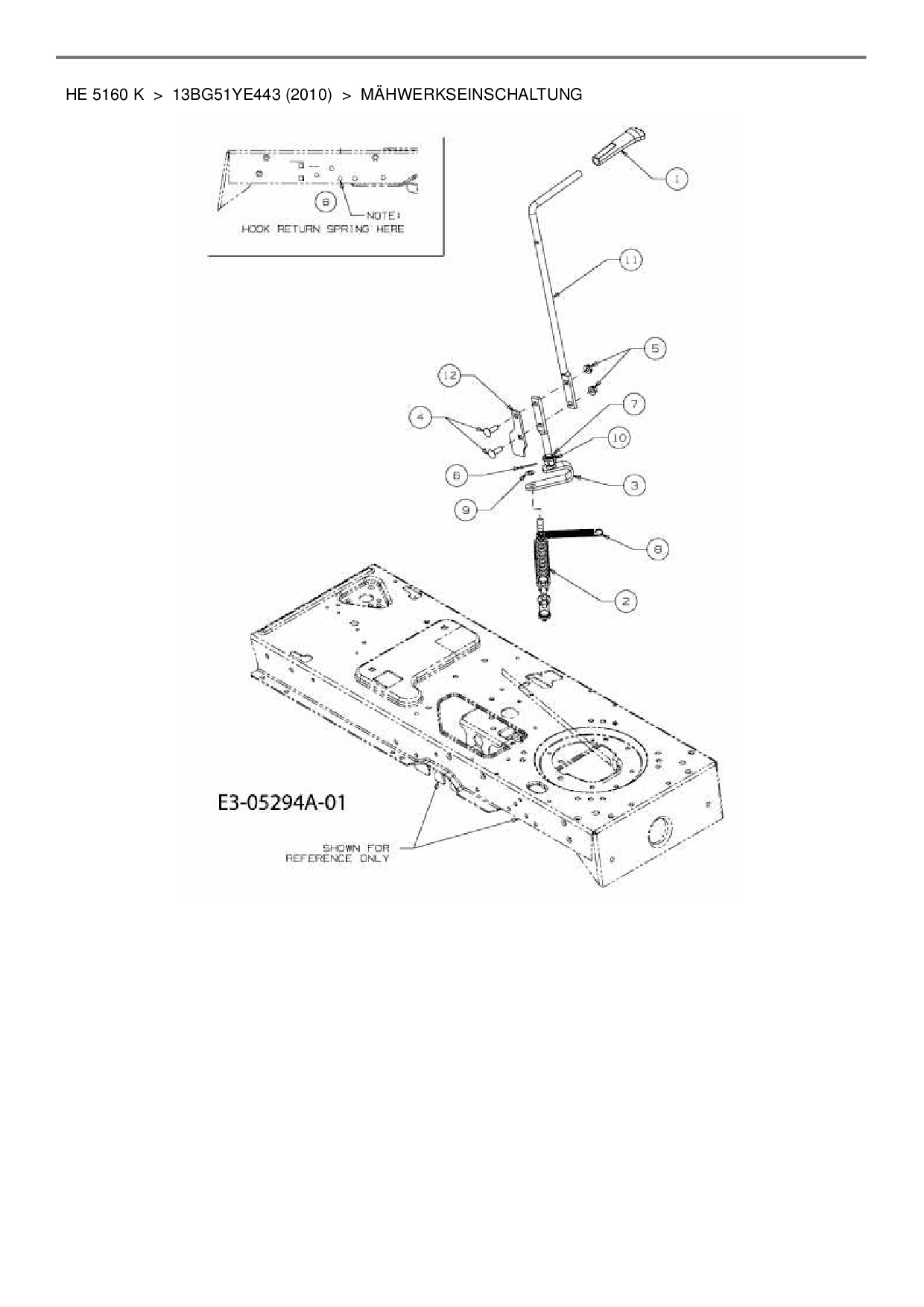 Ersatzteile für Rasentraktor Yard-Man HE 5160 K aus der Zeichnung Mähwerkseinschaltung: