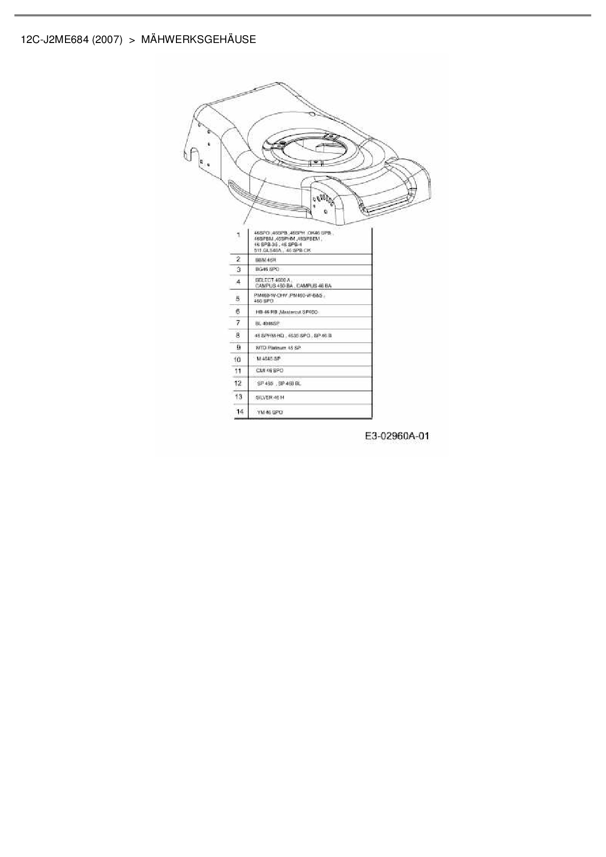 Ersatzteile für Motormäher mit Antrieb Bolens BL 4046 SP aus der Zeichnung Mähwerksgehäuse: