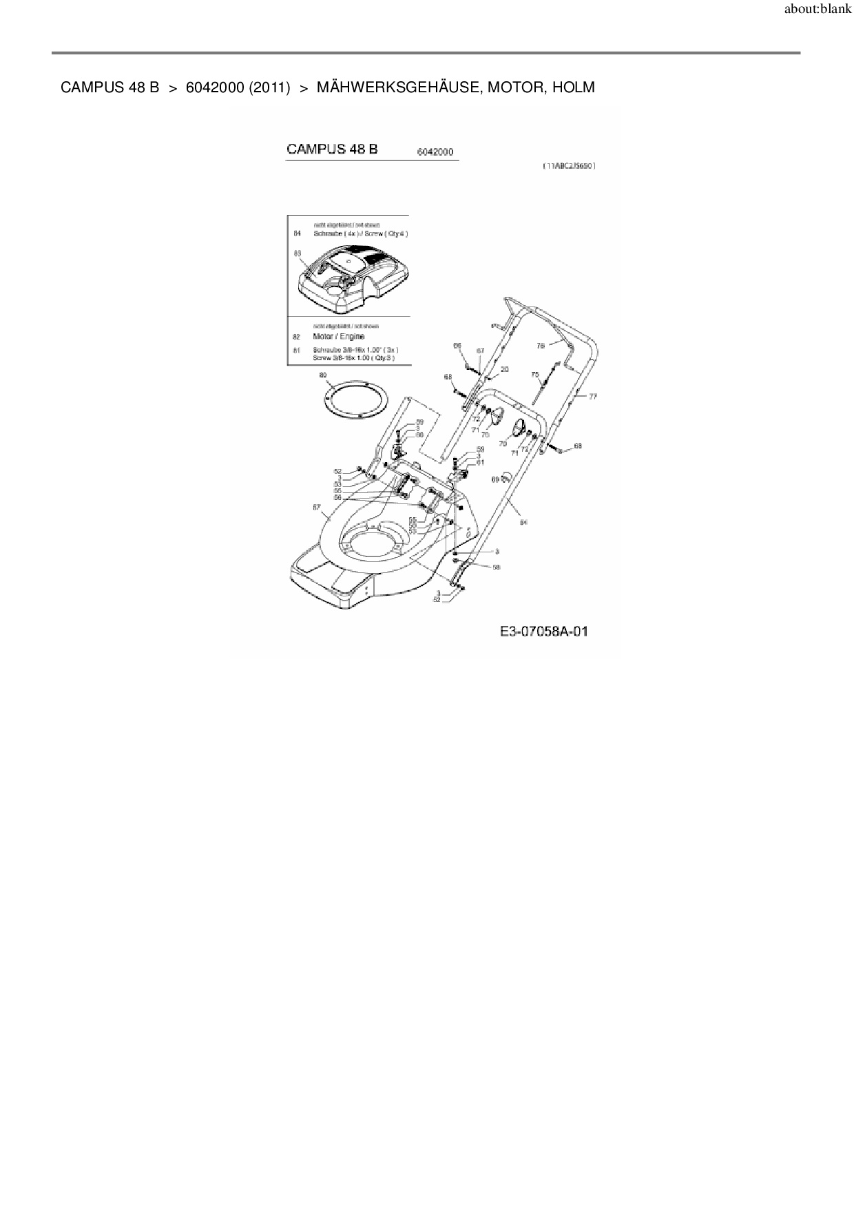 Ersatzteile für Motormäher Wolf-Garten Campus 48 B aus der Zeichnung Mähwerksgehäuse, Motor, Holm:
