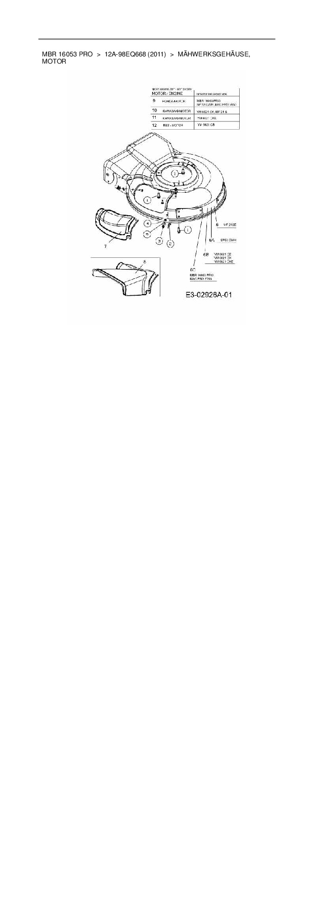 Ersatzteile für Motormäher mit Antrieb Mac Allister MBR 16053 PRO aus der Zeichnung Mähwerksgehäuse, Motor:
