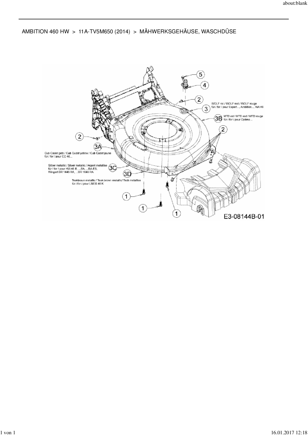 Ersatzteile für Motormäher Wolf-Garten Ambition 460 HW aus der Zeichnung Mähwerksgehäuse, Waschdüse: