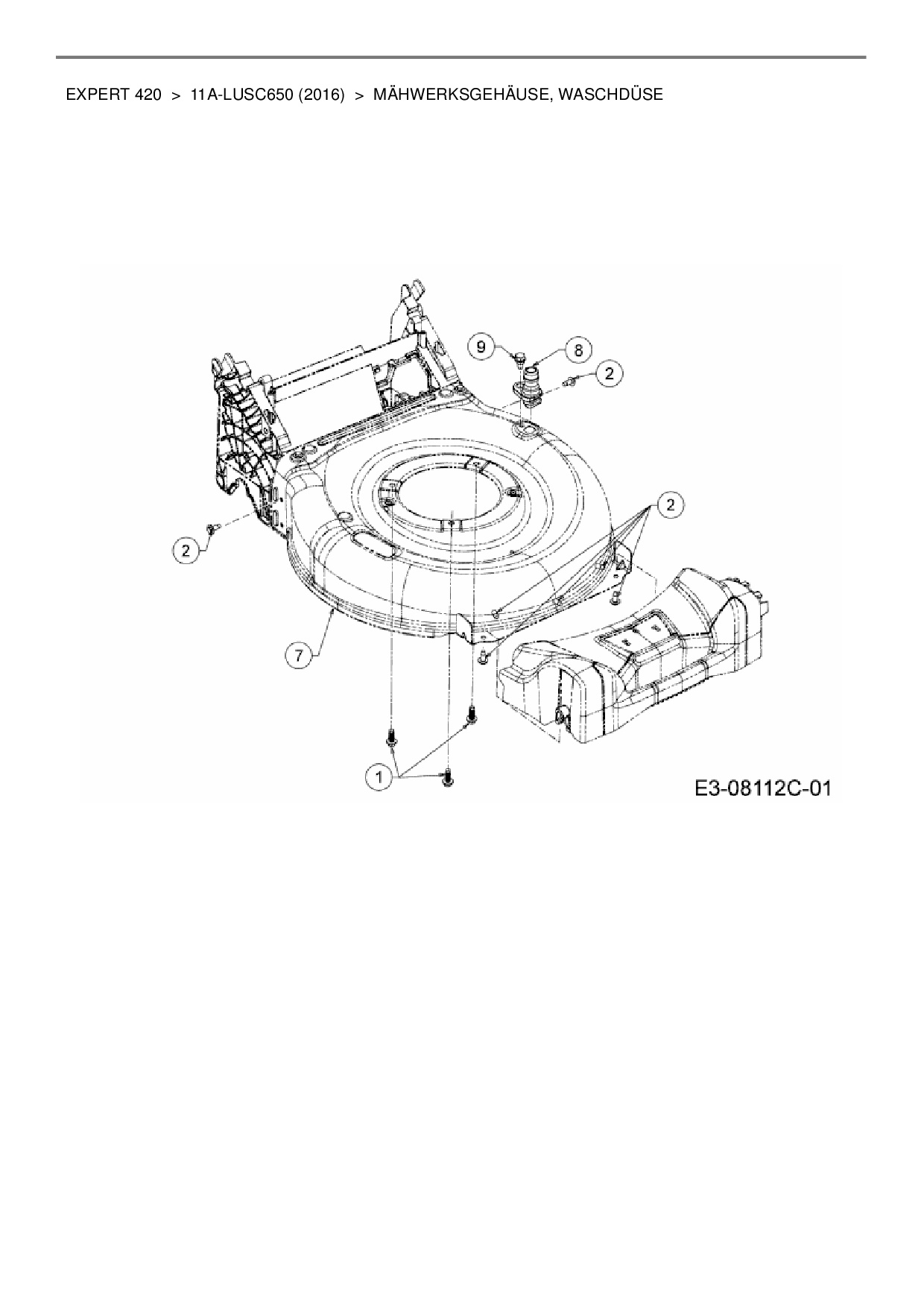 Ersatzteile für Motormäher Wolf-Garten Expert Expert 420 aus der Zeichnung Mähwerksgehäuse, Waschdüse: