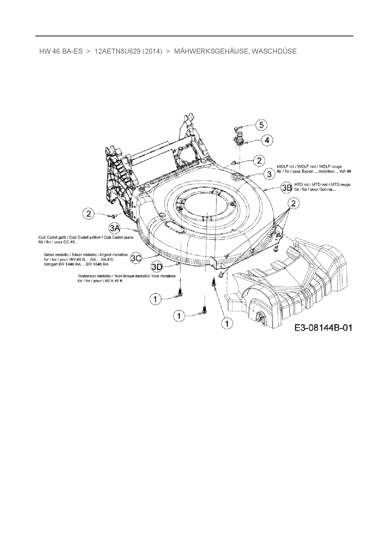Ersatzteile für Motormäher mit Antrieb Mr. Gardener HW 46 BA-ES aus der Zeichnung Mähwerksgehäuse, Waschdüse: