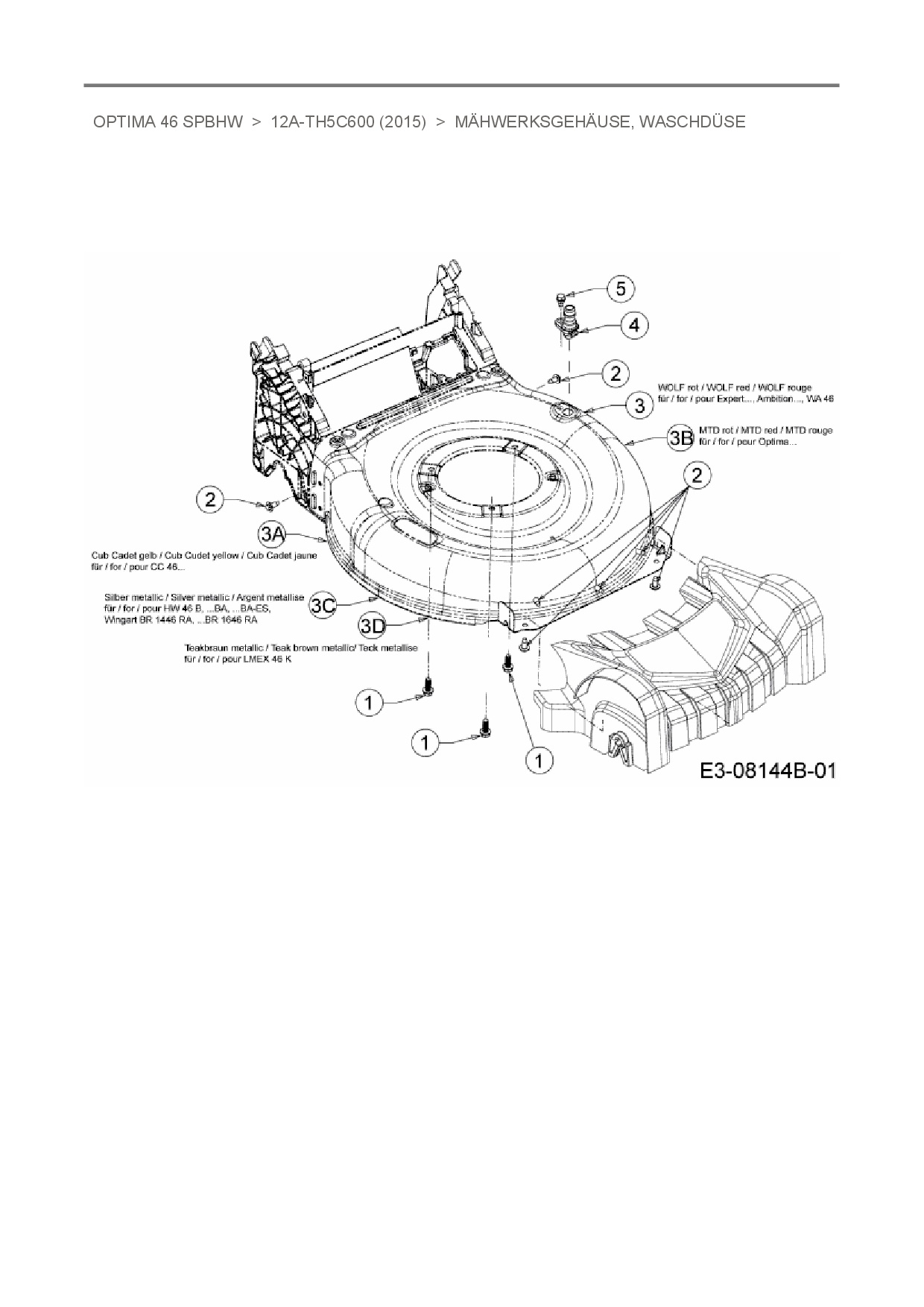 Ersatzteile für Motormäher mit Antrieb MTD Optima 46 SPBHW aus der Zeichnung Mähwerksgehäuse, Waschdüse: