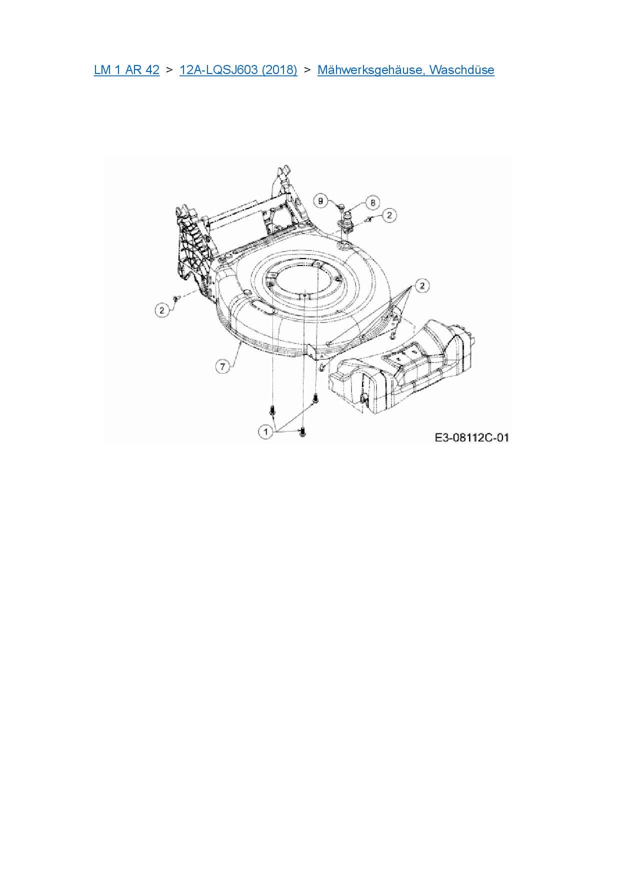 Ersatzteile für Motormäher mit Antrieb Cub Cadet LM 1 AR 42 aus der Zeichnung Mähwerksgehäuse, Waschdüse: