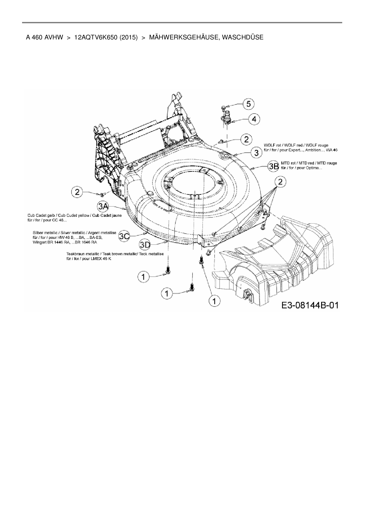 Ersatzteile für Motormäher mit Antrieb Wolf-Garten A 460 AVHW aus der Zeichnung Mähwerksgehäuse, Waschdüse: