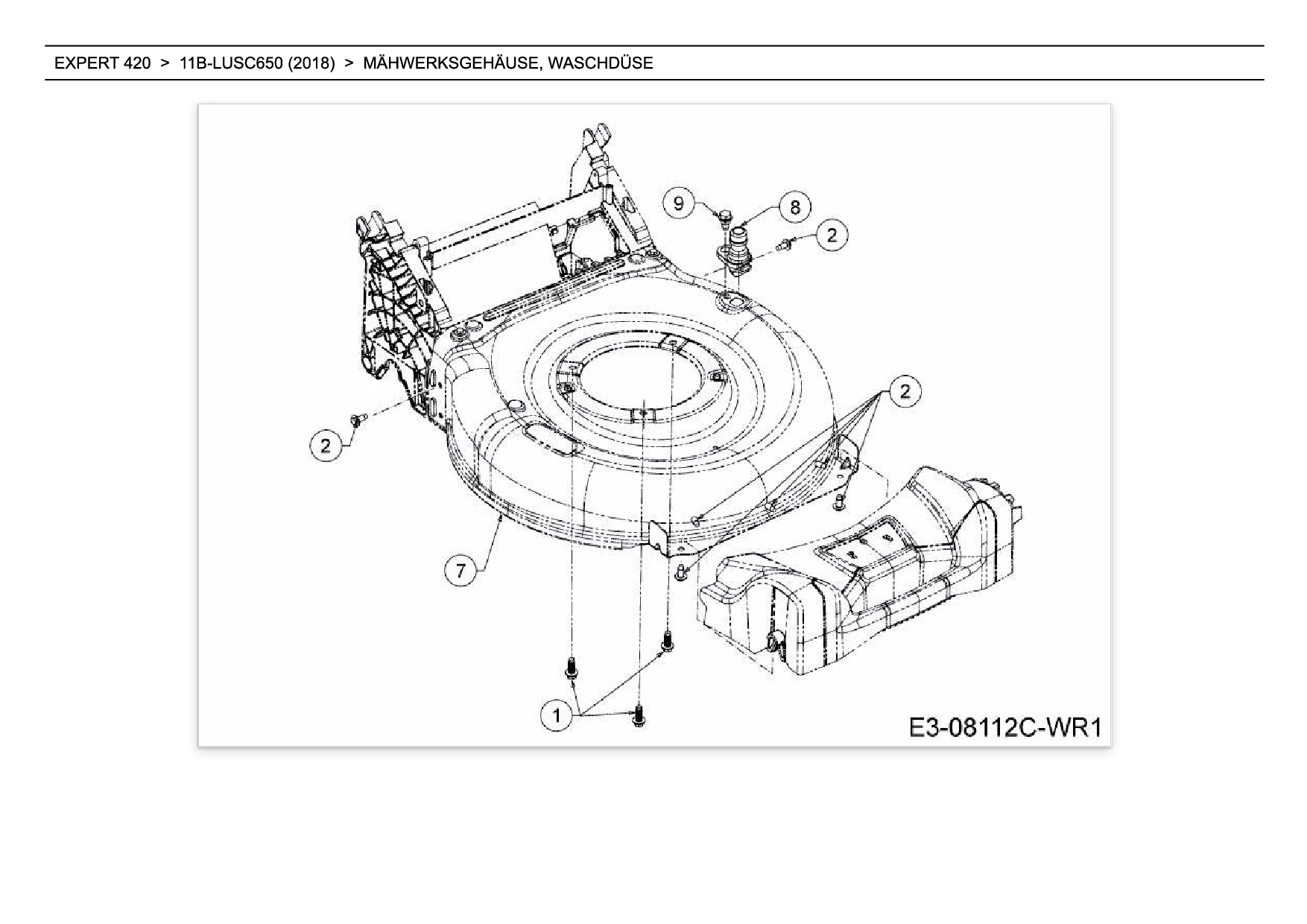 Ersatzteile für Motormäher Wolf-Garten Expert EXPERT 420 aus der Zeichnung Mähwerksgehäuse, Waschdüse: