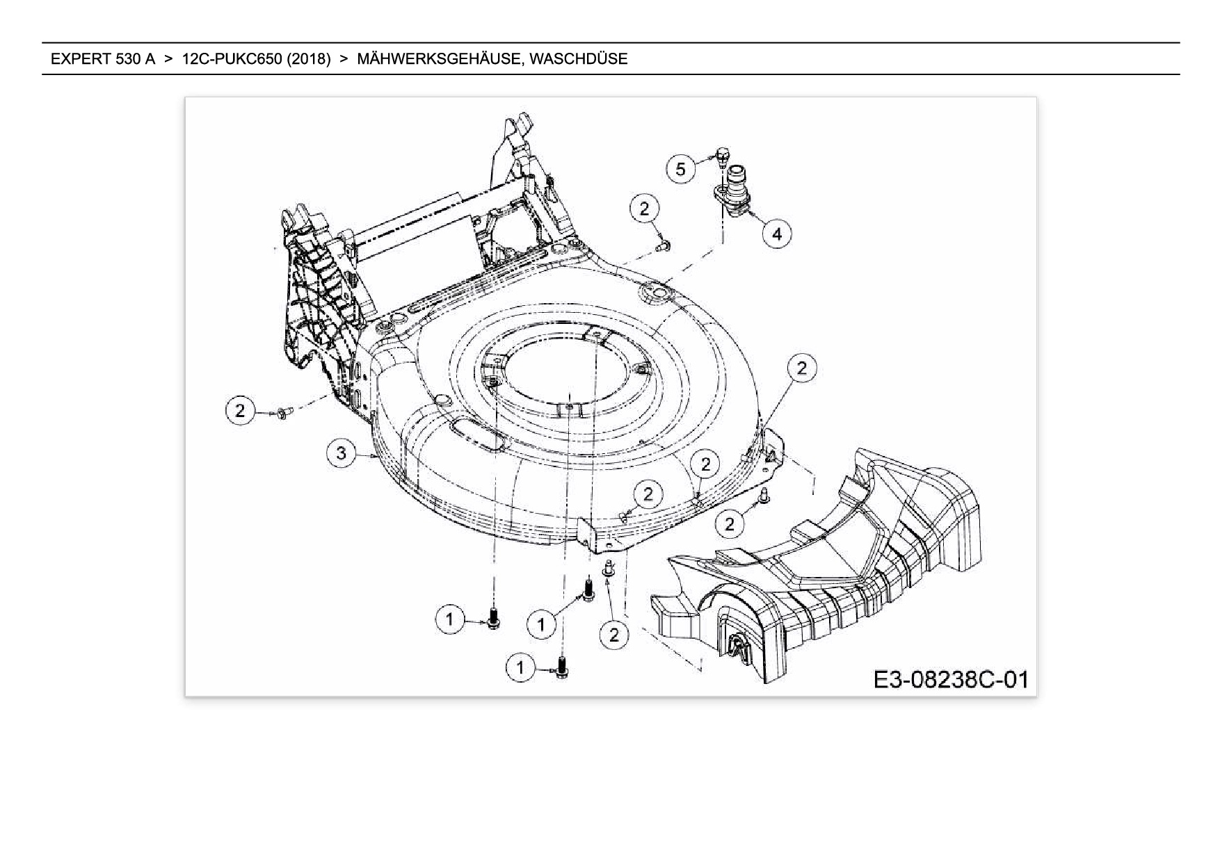 Ersatzteile für Motormäher mit Antrieb Wolf-Garten Expert EXPERT 530 A aus der Zeichnung Mähwerksgehäuse, Waschdüse: