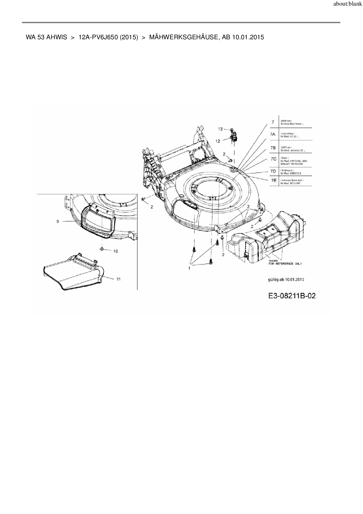 Ersatzteile für Motormäher mit Antrieb Wolf-Garten WA 53 AHWIS aus der Zeichnung Mähwerksgehäuse, ab 10.01.2015: