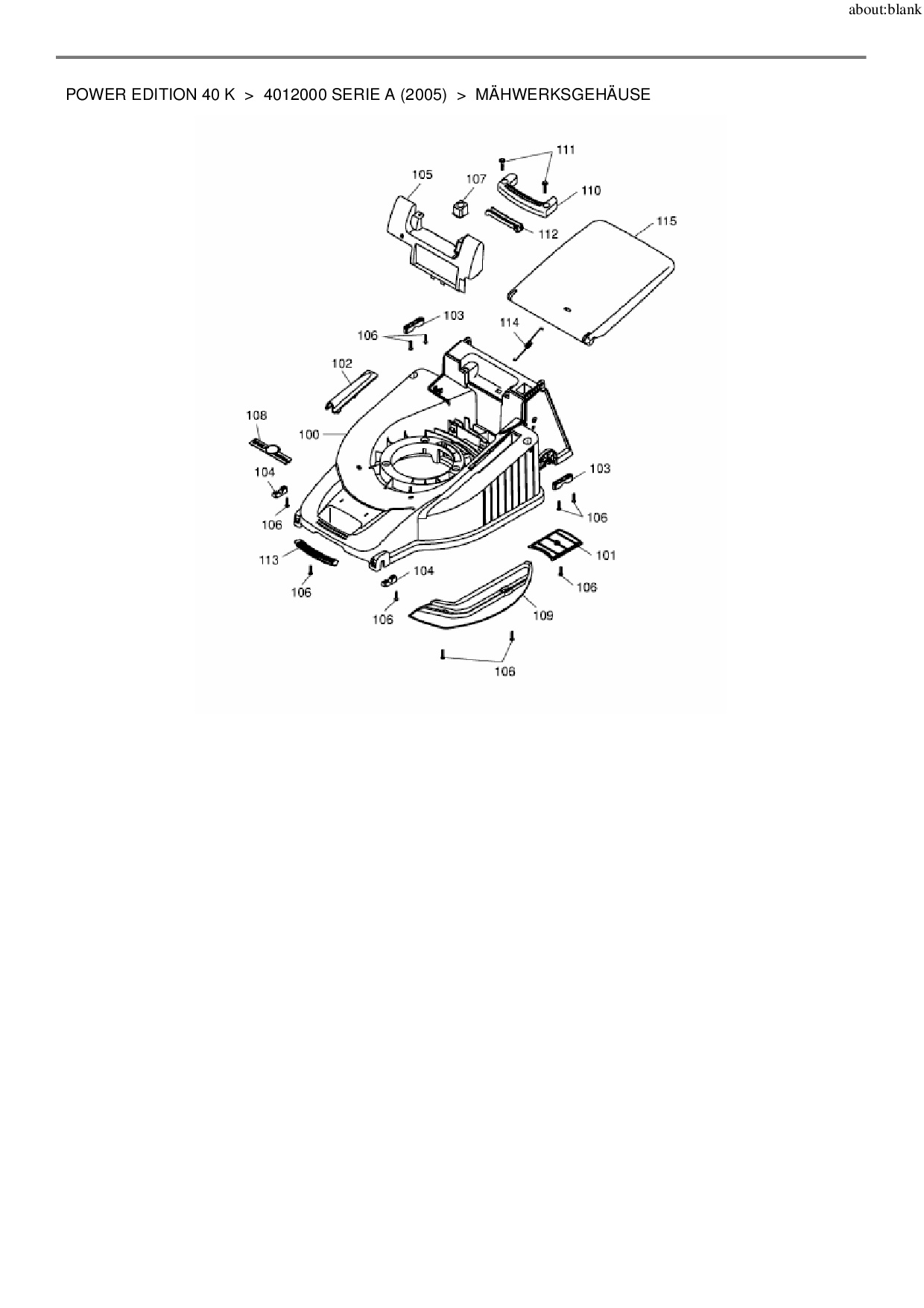 Ersatzteile für Motormäher Wolf-Garten Power Edition 40 K aus der Zeichnung Mähwerksgehäuse: