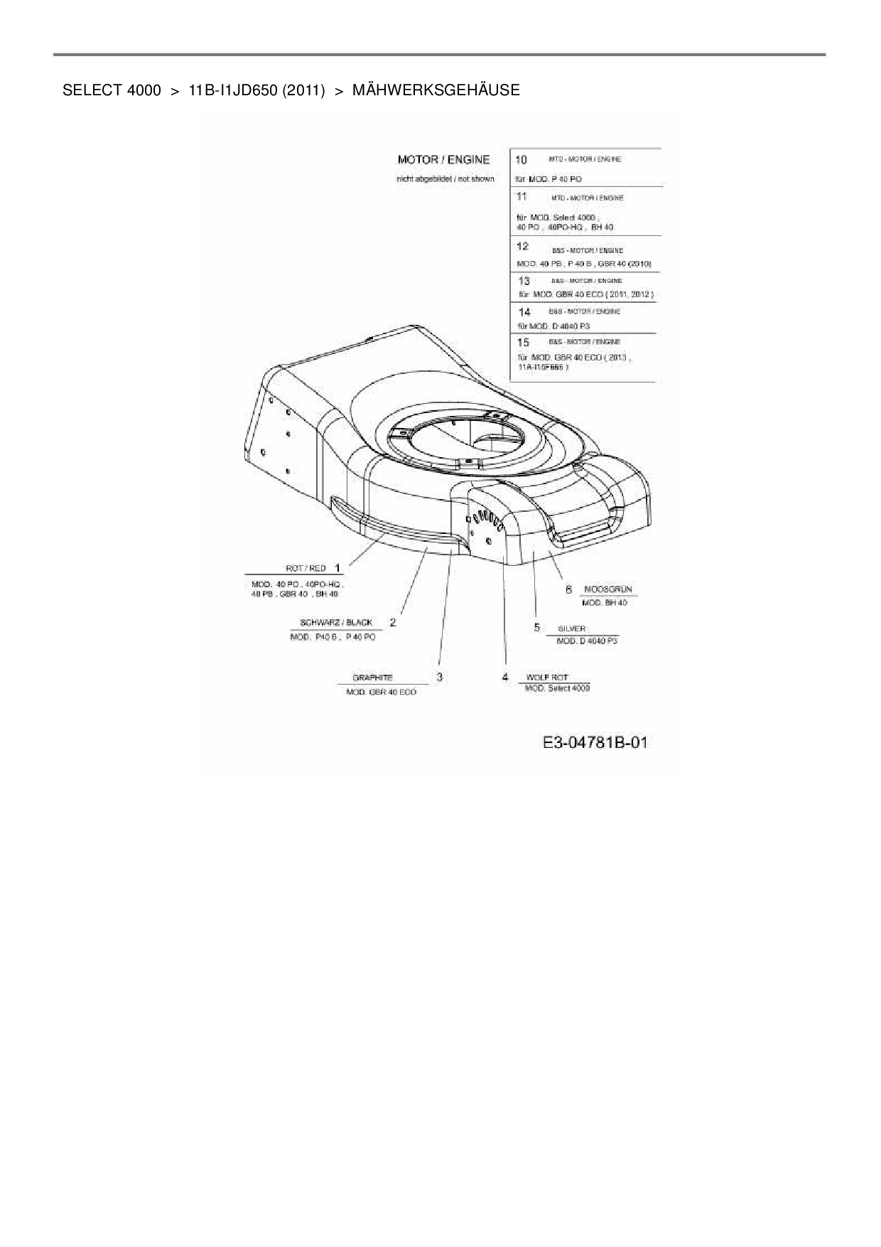 Ersatzteile für Motormäher Wolf-Garten Select 4000 aus der Zeichnung Mähwerksgehäuse: