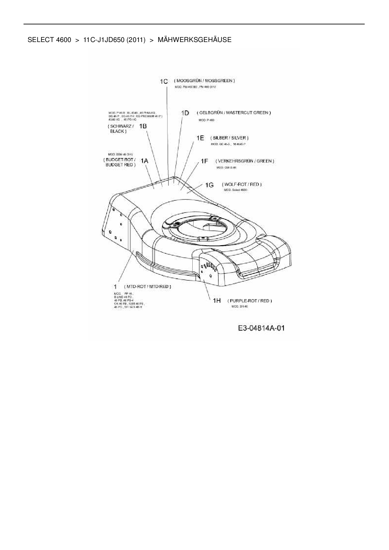 Ersatzteile für Motormäher Wolf-Garten Select 4600 aus der Zeichnung Mähwerksgehäuse: