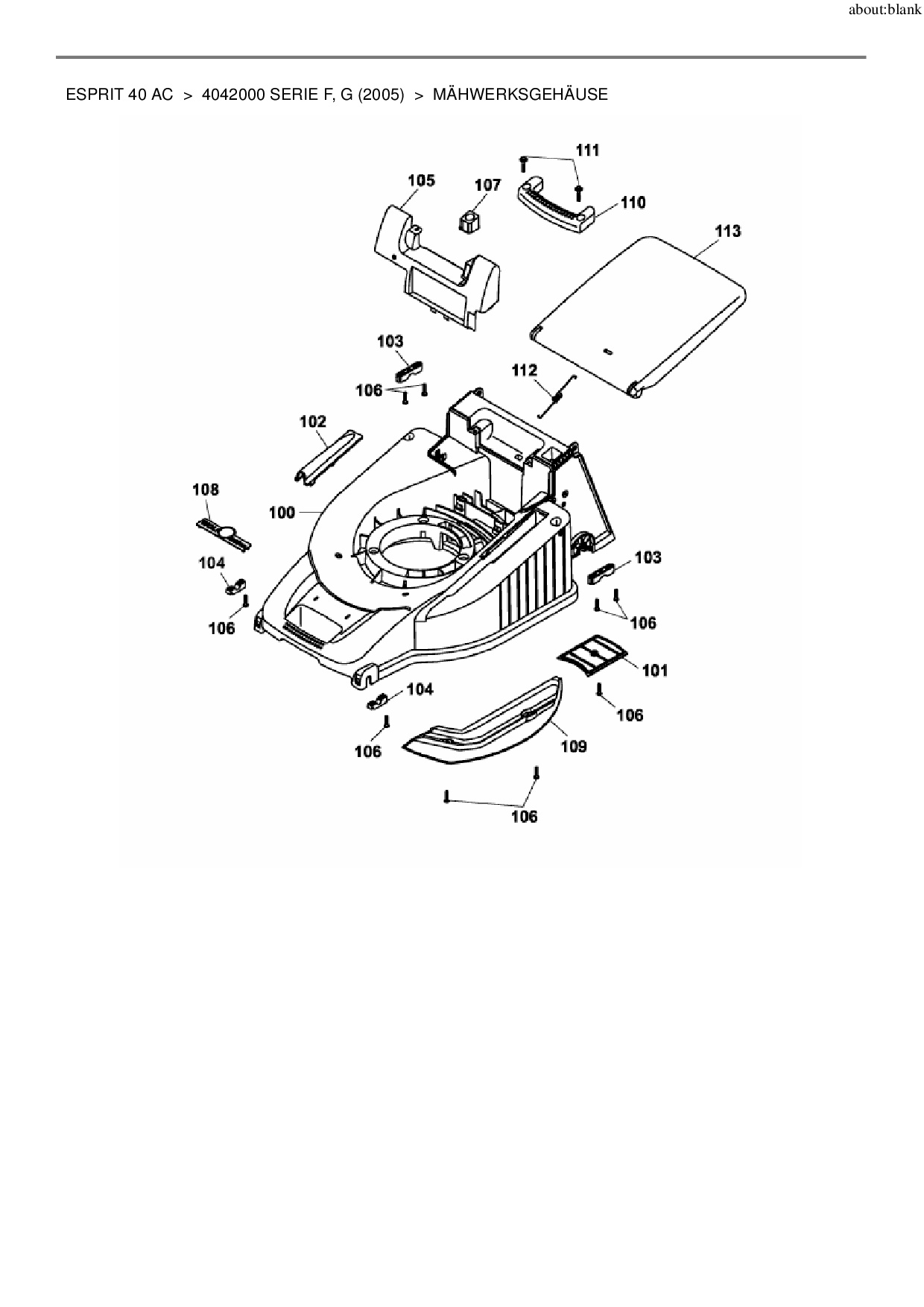 Ersatzteile für Akkumäher Wolf-Garten Esprit 40 AC aus der Zeichnung Mähwerksgehäuse:
