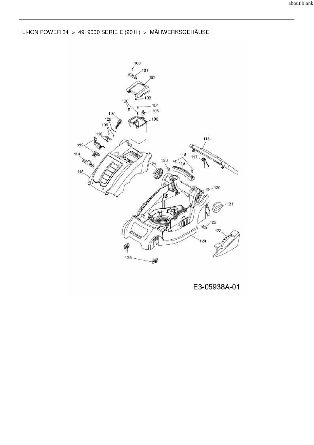 Ersatzteile für Akkumäher Wolf-Garten Li-Ion Power 34 aus der Zeichnung Mähwerksgehäuse: