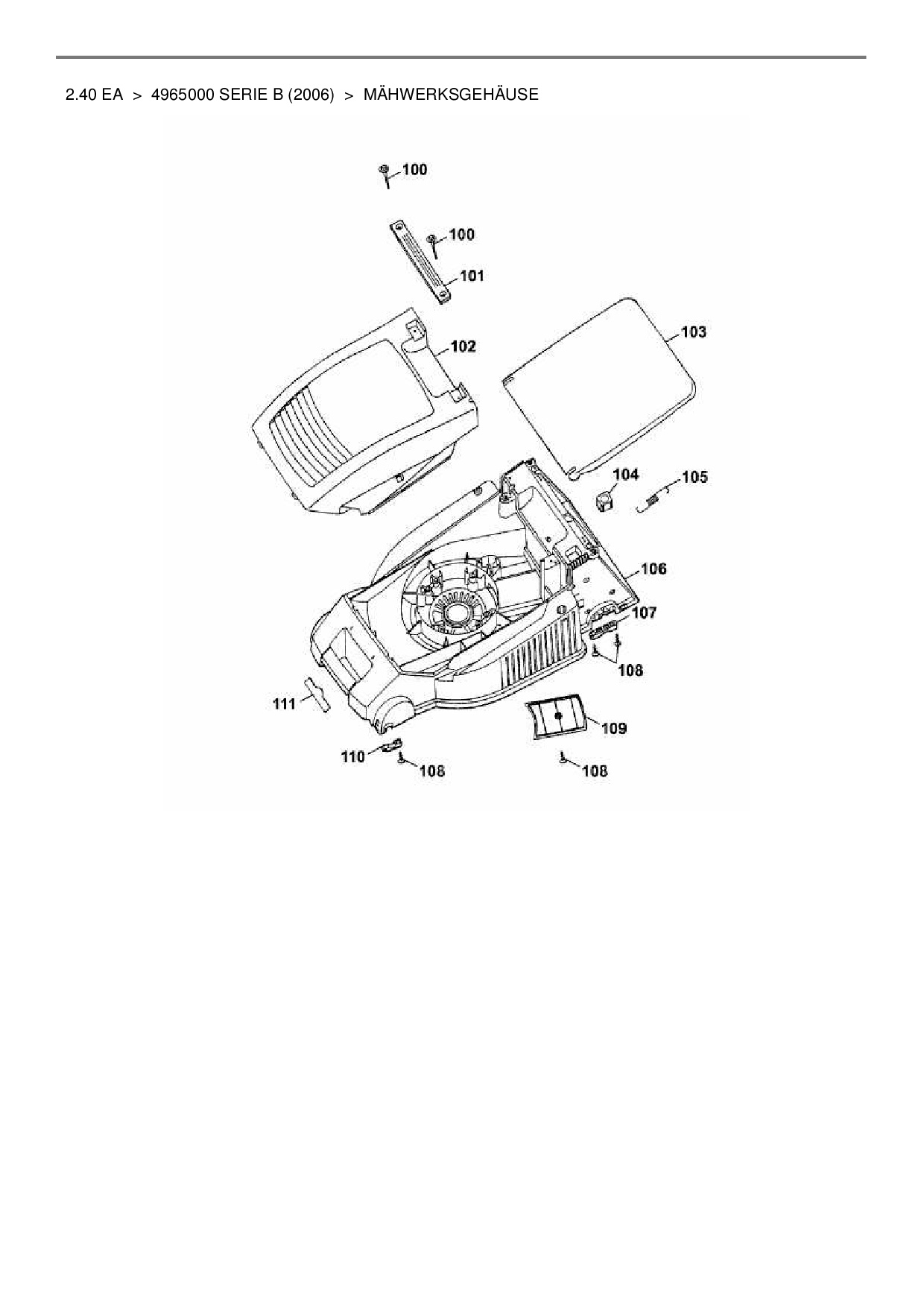 Ersatzteile für Elektromäher mit Antrieb Wolf-Garten 2.40 EA aus der Zeichnung Mähwerksgehäuse:
