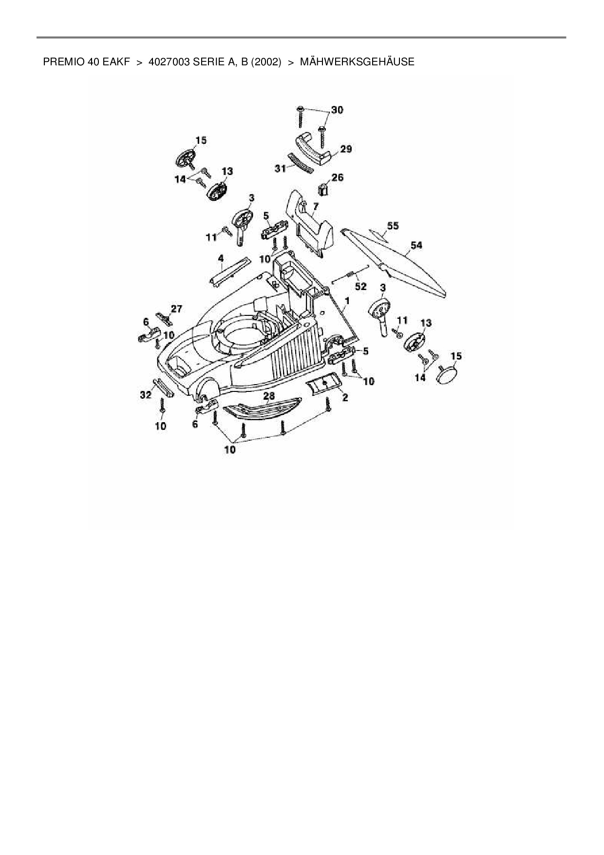 Ersatzteile für Elektromäher mit Antrieb Wolf-Garten Premio 40 EAKF aus der Zeichnung Mähwerksgehäuse: