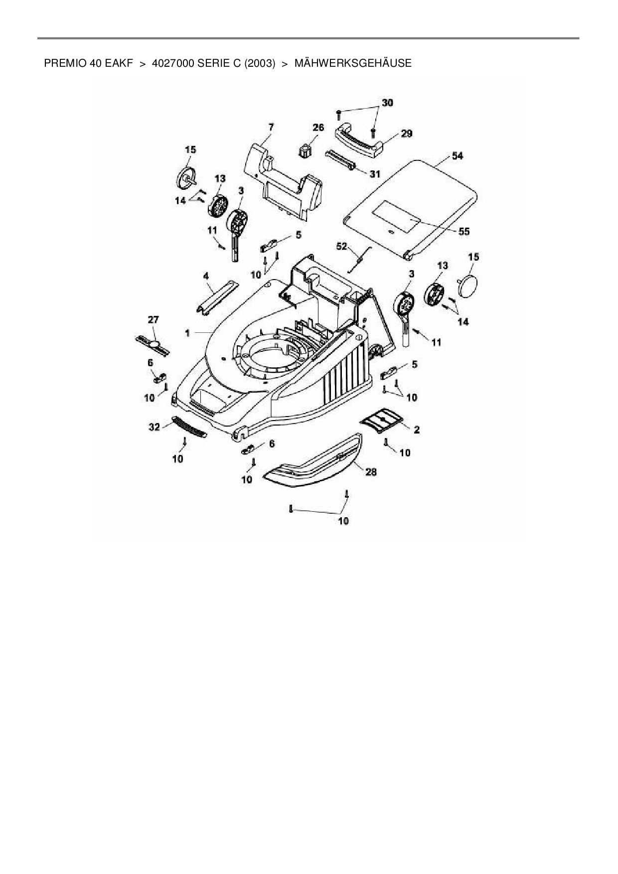 Ersatzteile für Elektromäher mit Antrieb Wolf-Garten Premio 40 EAKF aus der Zeichnung Mähwerksgehäuse: