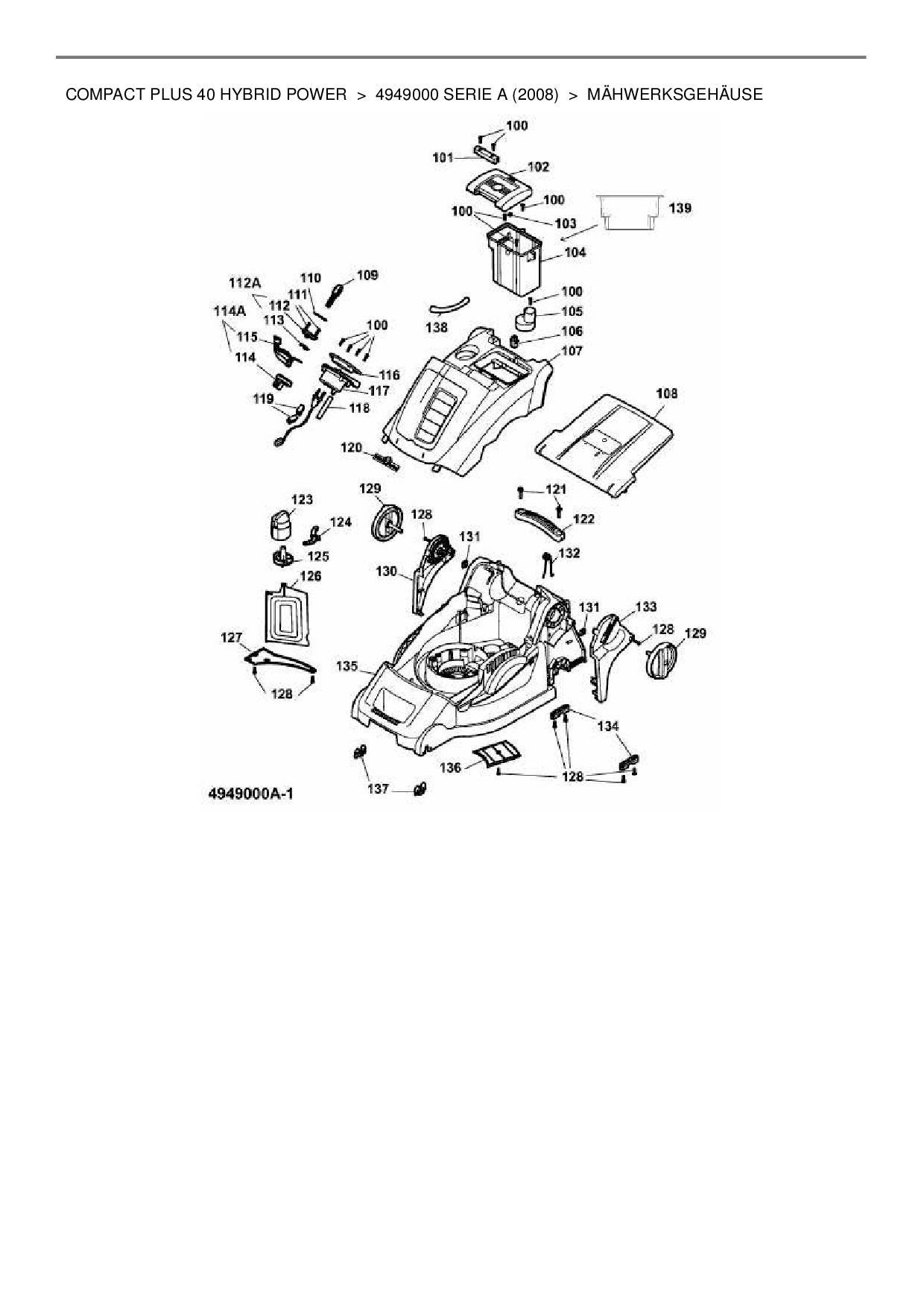 Ersatzteile für Hybridmäher Wolf-Garten Compact plus 40 Hybrid Power aus der Zeichnung Mähwerksgehäuse: