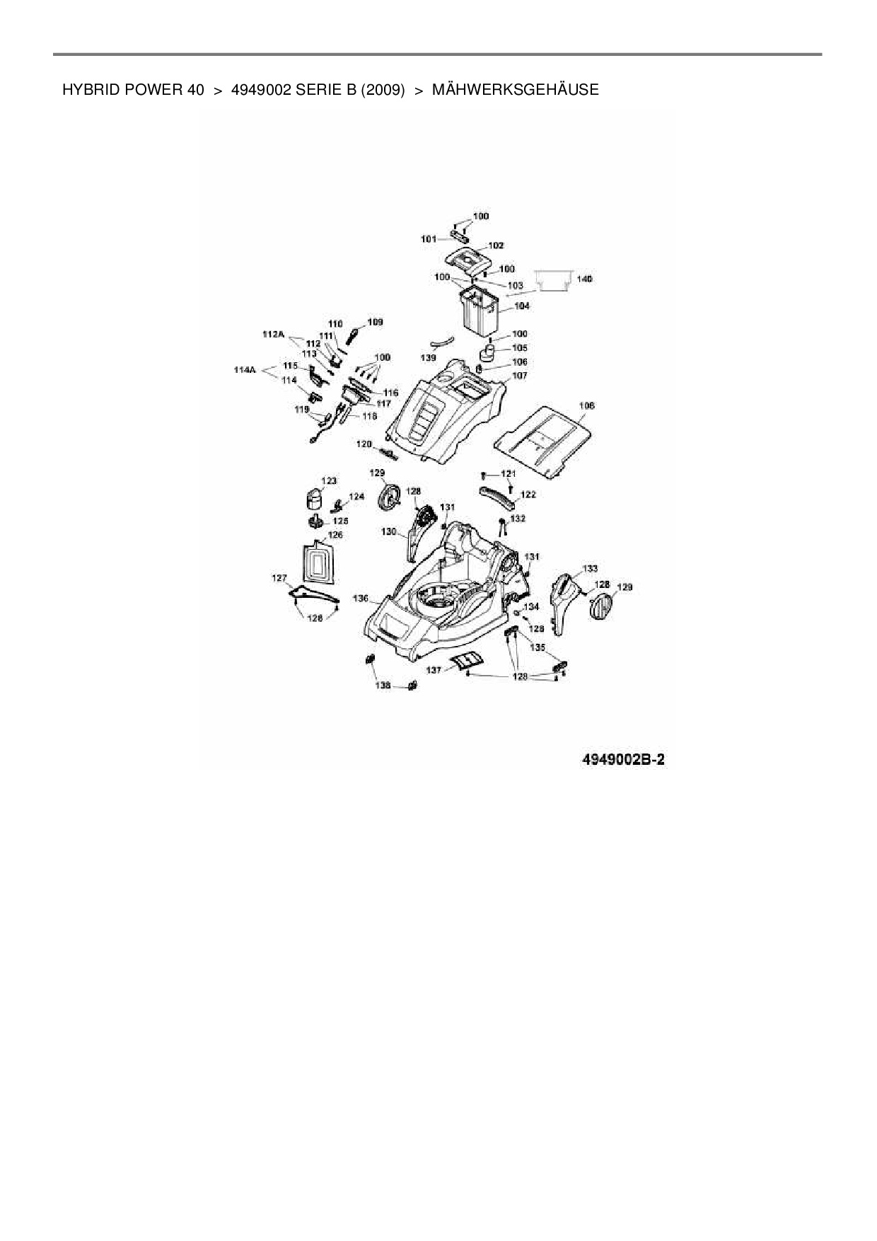 Zeichnung für Wolf-Garten Hybridmäher Hybrid Power 40 mit der Geräte-Artikelnr. 4949002 Serie B ab Baujahr 2009: