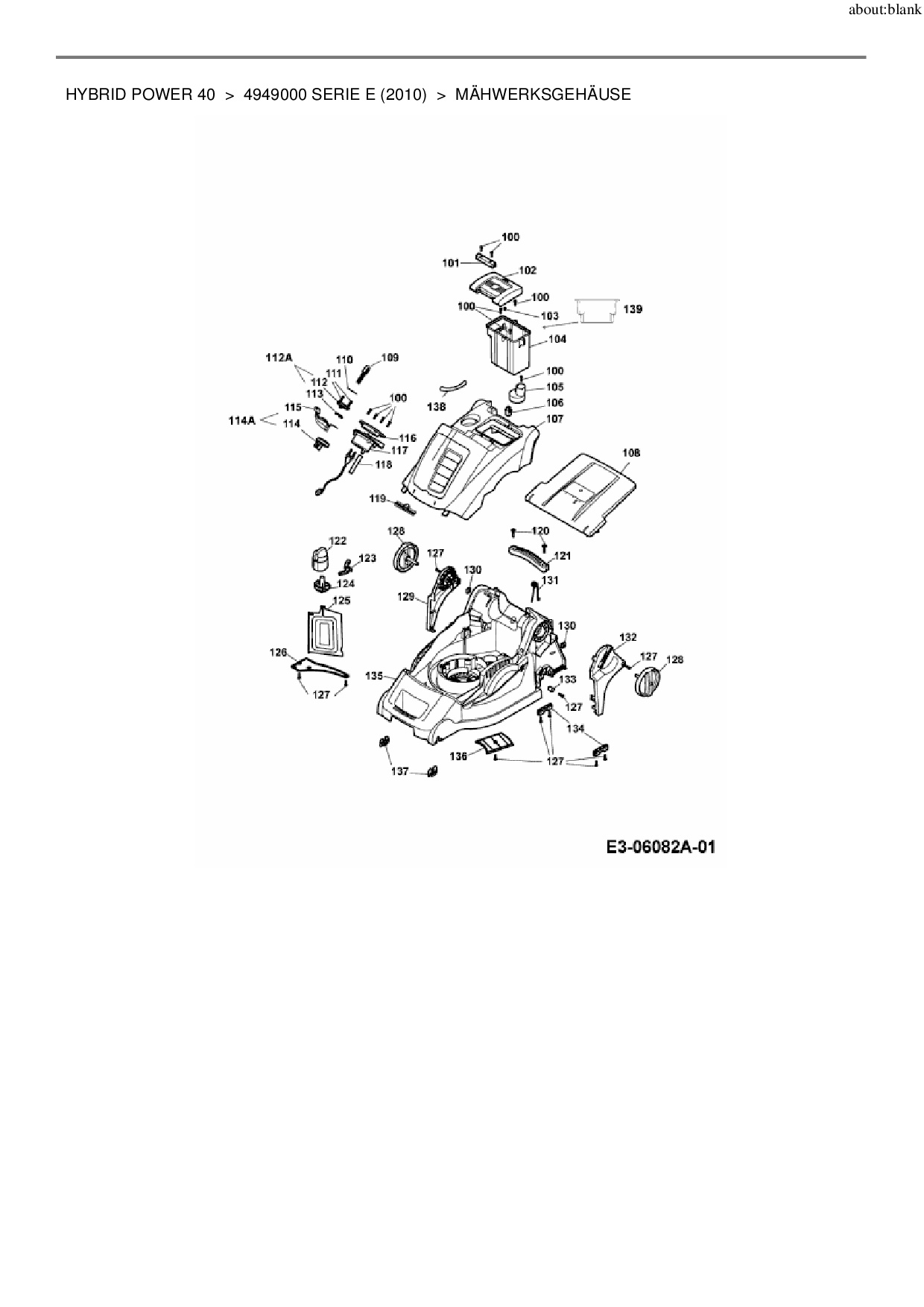 Ersatzteile für Hybridmäher Wolf-Garten Hybrid Power 40 aus der Zeichnung Mähwerksgehäuse: