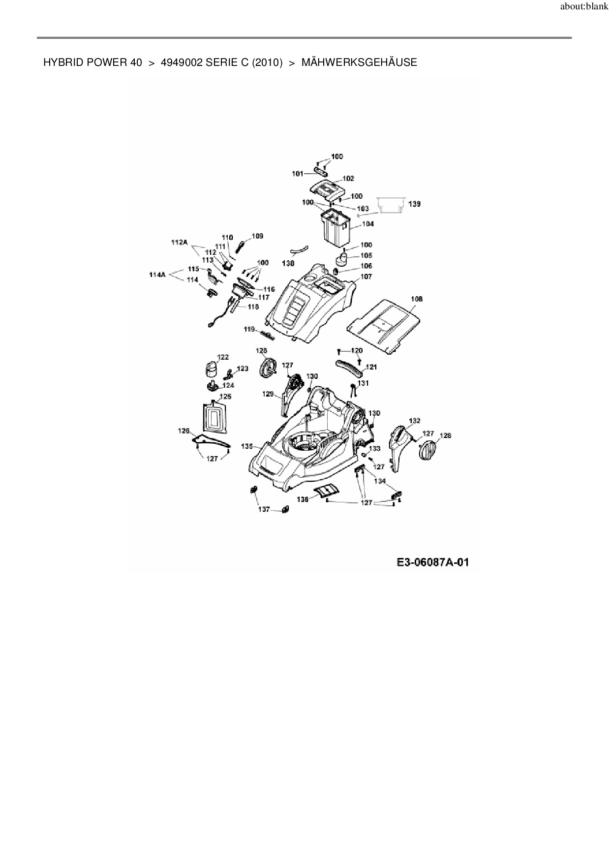 Ersatzteile für Hybridmäher Wolf-Garten Hybrid Power 40 aus der Zeichnung Mähwerksgehäuse: