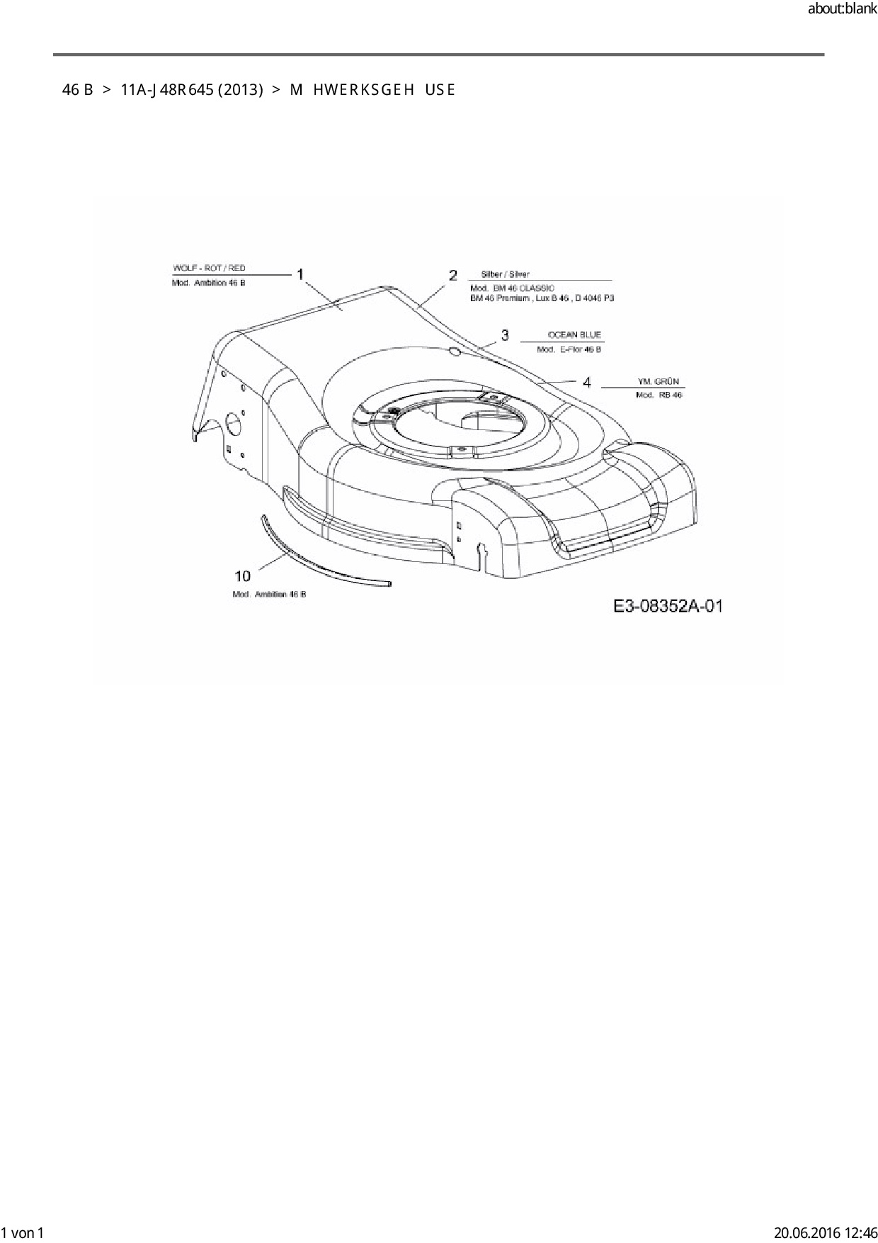 Ersatzteile für Motormäher E-FLOR 46 B aus der Zeichnung Mähwerksgehäuse: