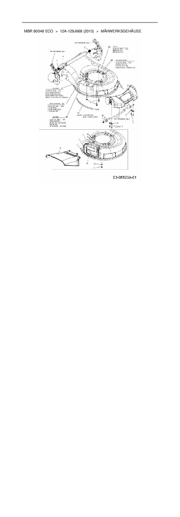 Ersatzteile für Motormäher mit Antrieb Mac Allister MBR 80048 ECO aus der Zeichnung Mähwerksgehäuse: