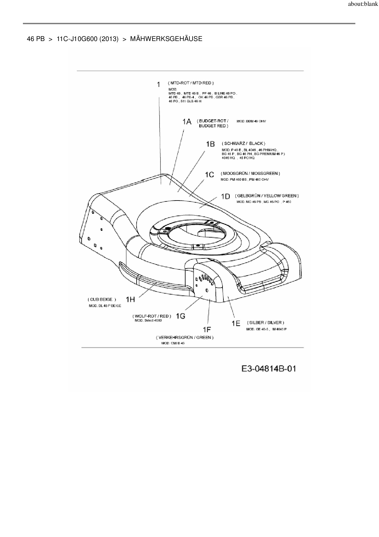 Ersatzteile für Motormäher MTD 46 PB aus der Zeichnung Mähwerksgehäuse: