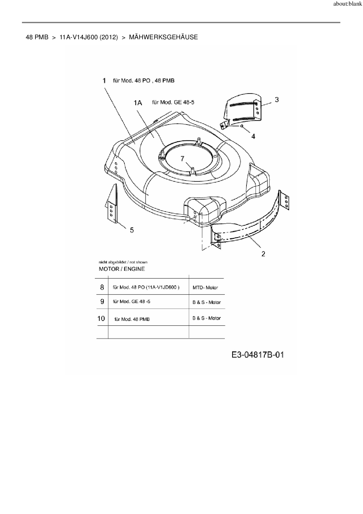 Ersatzteile für Motormäher MTD 48 PMB aus der Zeichnung Mähwerksgehäuse: