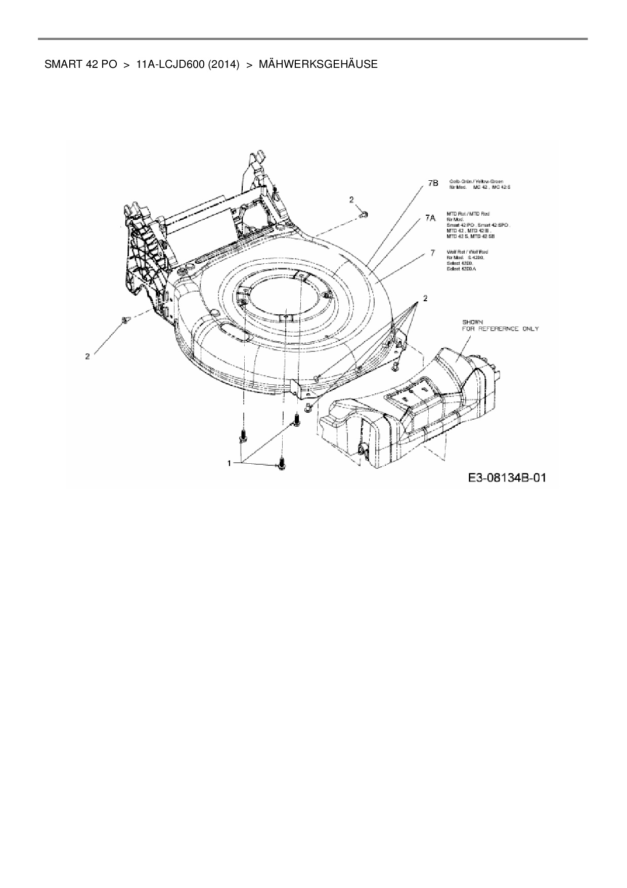 Ersatzteile für Motormäher MTD Smart 42 PO aus der Zeichnung Mähwerksgehäuse: