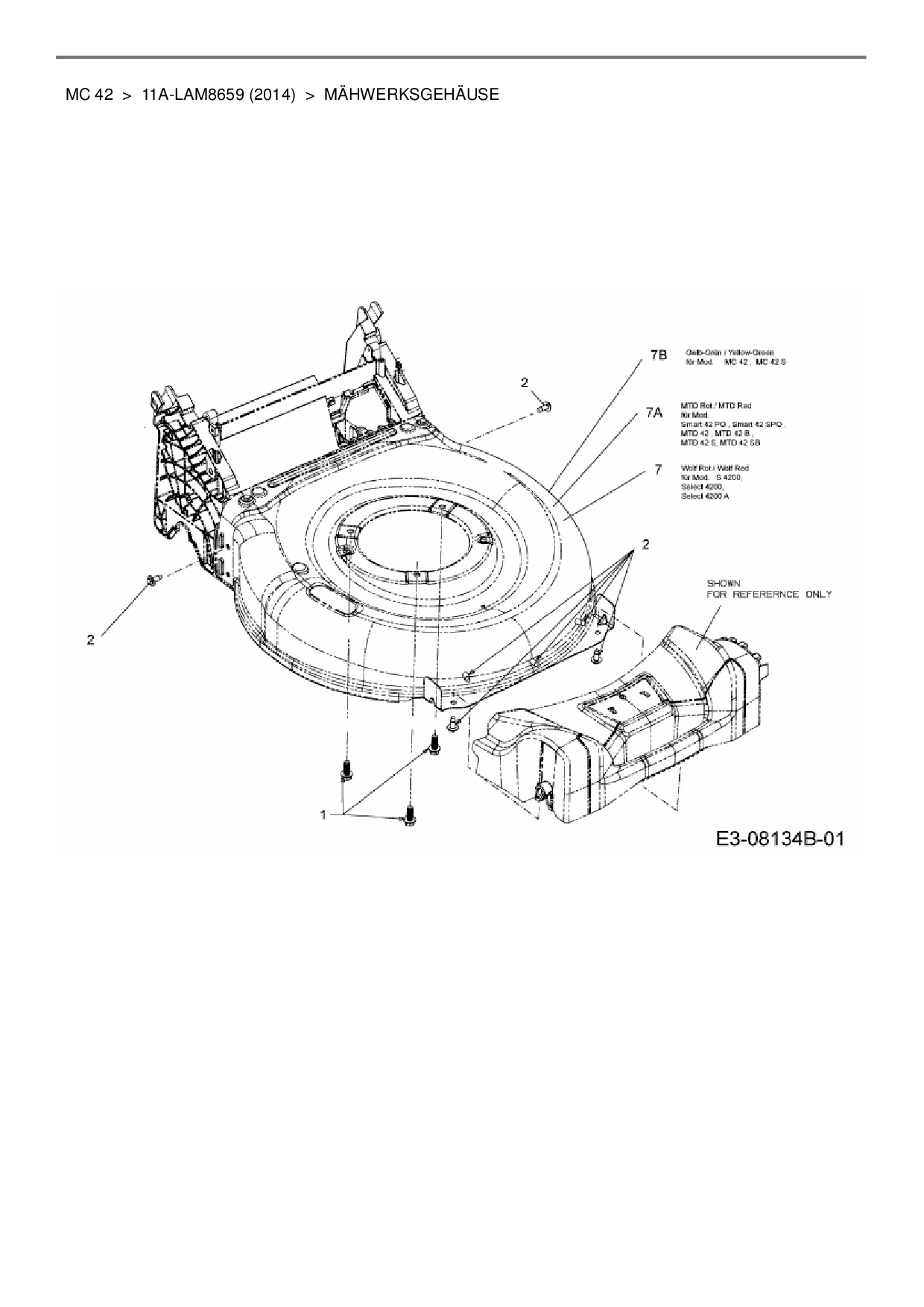 Ersatzteile für Motormäher Mastercut MC 42 aus der Zeichnung Mähwerksgehäuse: