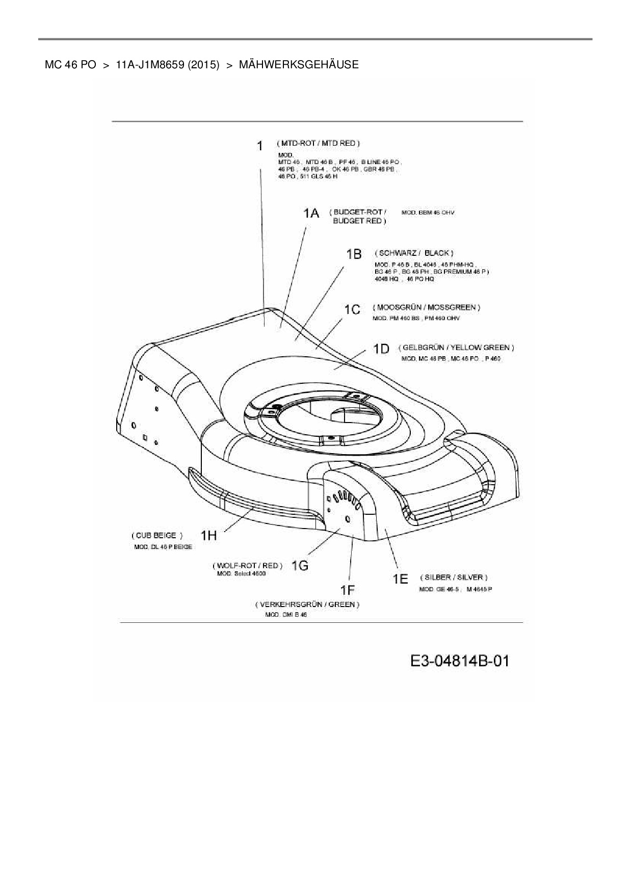 Ersatzteile für Motormäher Mastercut MC 46 PO aus der Zeichnung Mähwerksgehäuse: