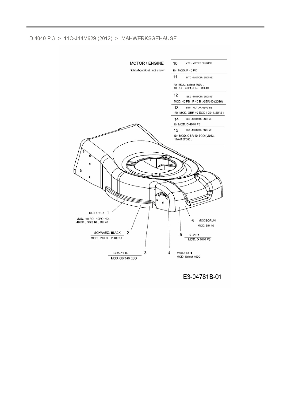 Ersatzteile für Motormäher Mr. Gardener D 4040 P 3 aus der Zeichnung Mähwerksgehäuse: