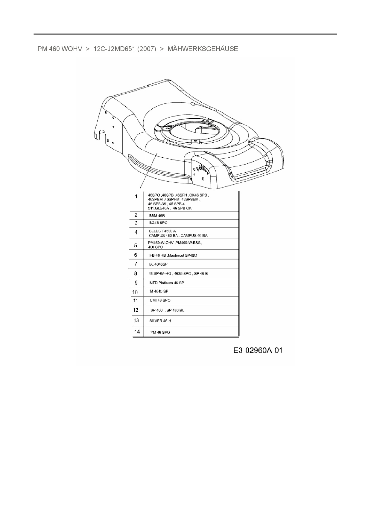 Download Ersatzteil-Zeichnung Terradena PM 460 WOHV Zeichnung Mähwerksgehäuse (PDF-Format)