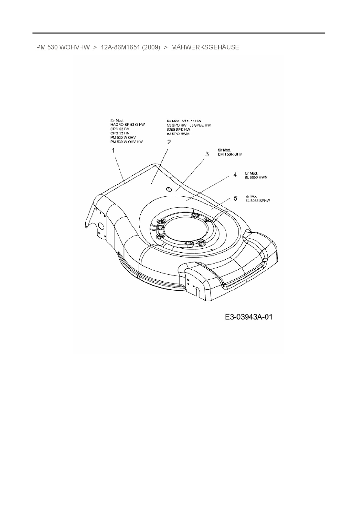 Ersatzteile für Motormäher mit Antrieb Terradena PM 530 WOHVHW aus der Zeichnung Mähwerksgehäuse: