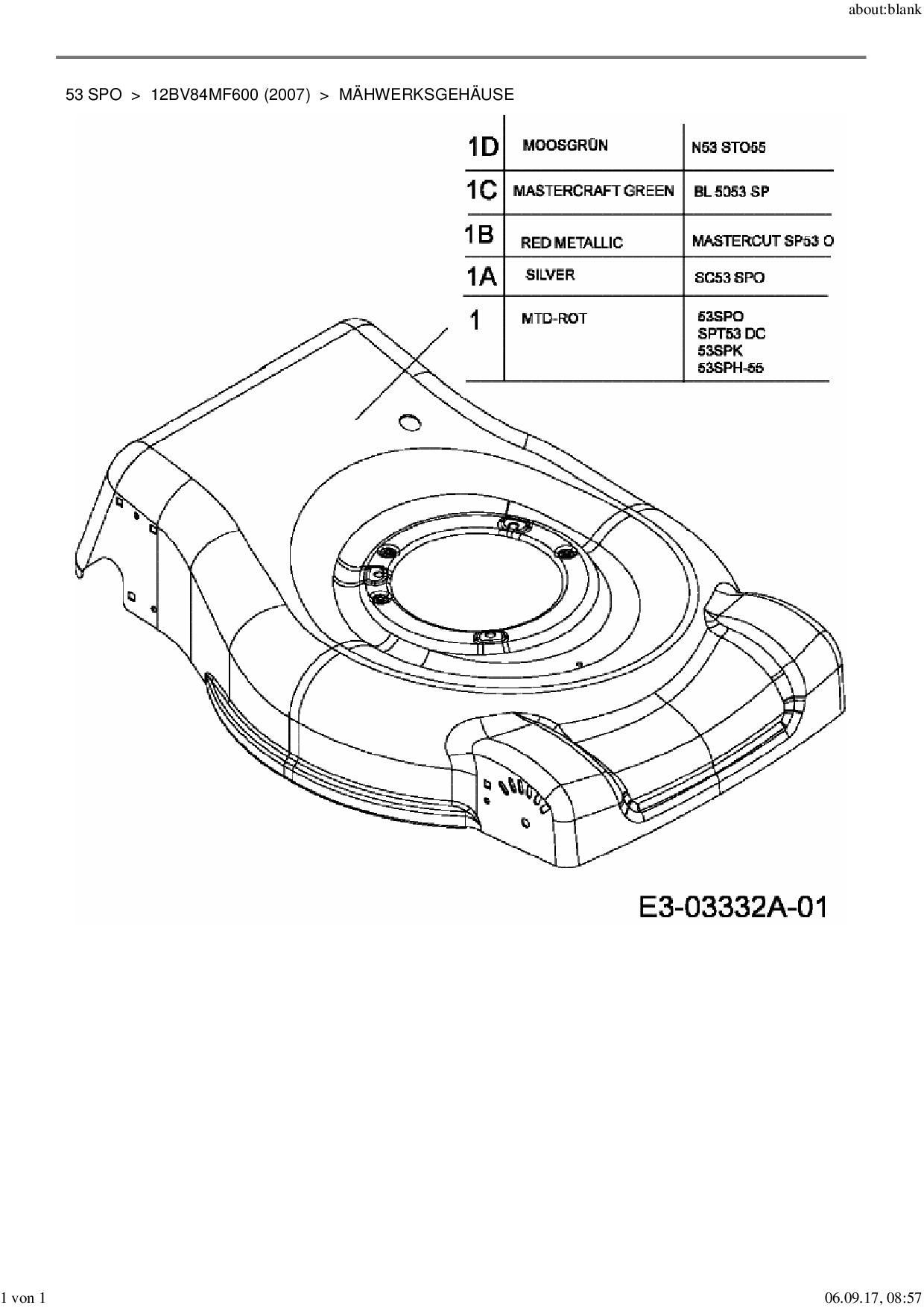 Ersatzteile für Motormäher mit Antrieb MTD 53 SPO aus der Zeichnung Mähwerksgehäuse: