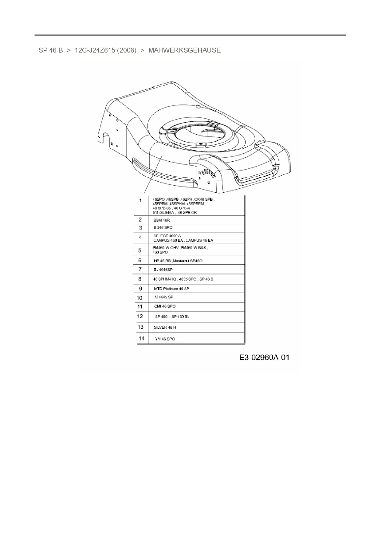 Ersatzteile für Motormäher mit Antrieb MTD SP 46 B aus der Zeichnung Mähwerksgehäuse:
