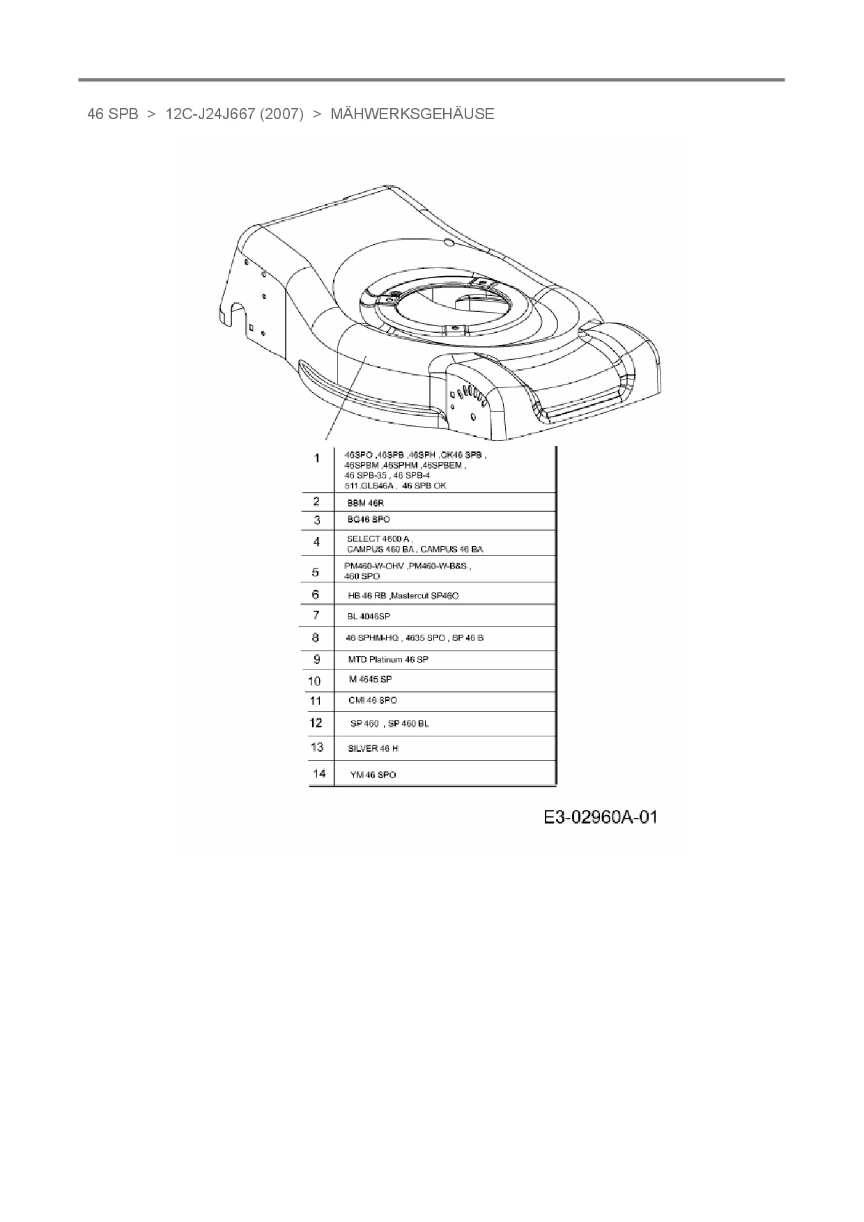 Ersatzteile für Motormäher mit Antrieb OK 46 SPB aus der Zeichnung Mähwerksgehäuse: