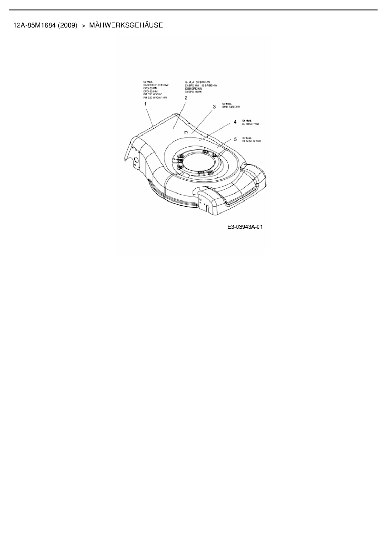 Ersatzteile für Motormäher mit Antrieb Bolens BL 5053 SPHW aus der Zeichnung Mähwerksgehäuse: