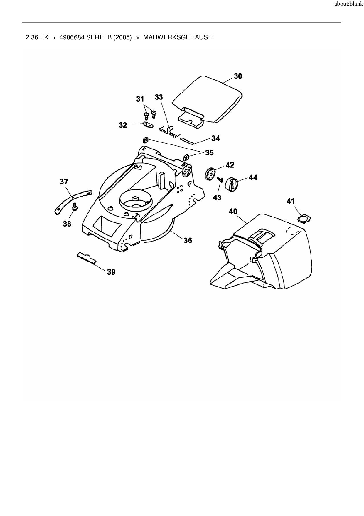 Ersatzteile für Elektromäher Wolf-Garten 2.36 EK aus der Zeichnung Mähwerksgehäuse: