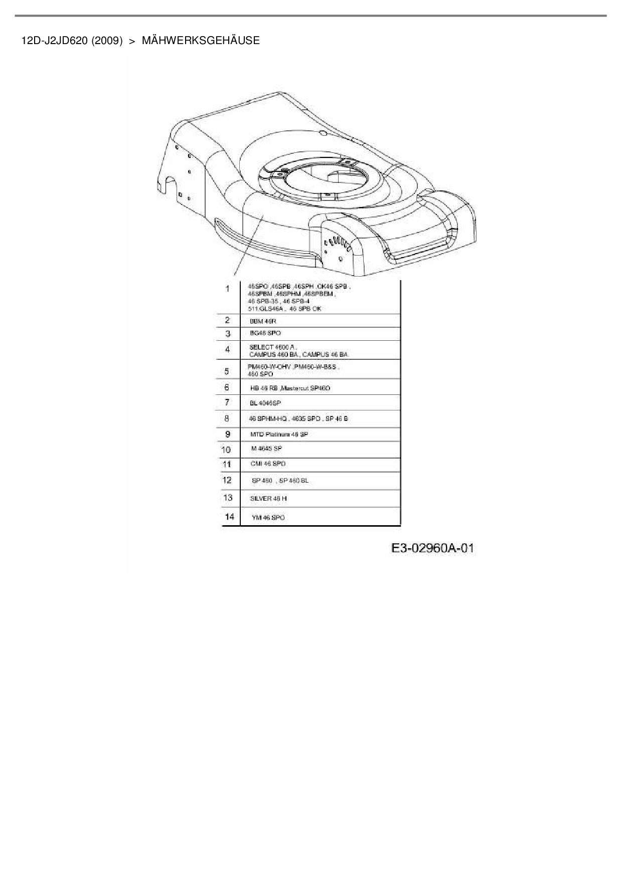 Ersatzteile für Motormäher mit Antrieb CMI 46 SPO aus der Zeichnung Mähwerksgehäuse: