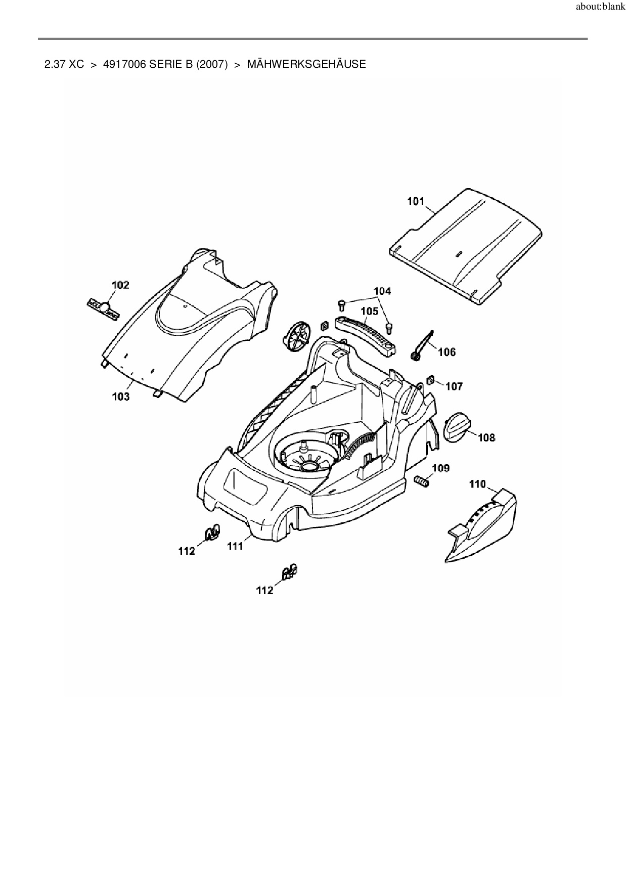 Ersatzteile für Elektromäher Wolf-Garten 2.37 XC aus der Zeichnung Mähwerksgehäuse: