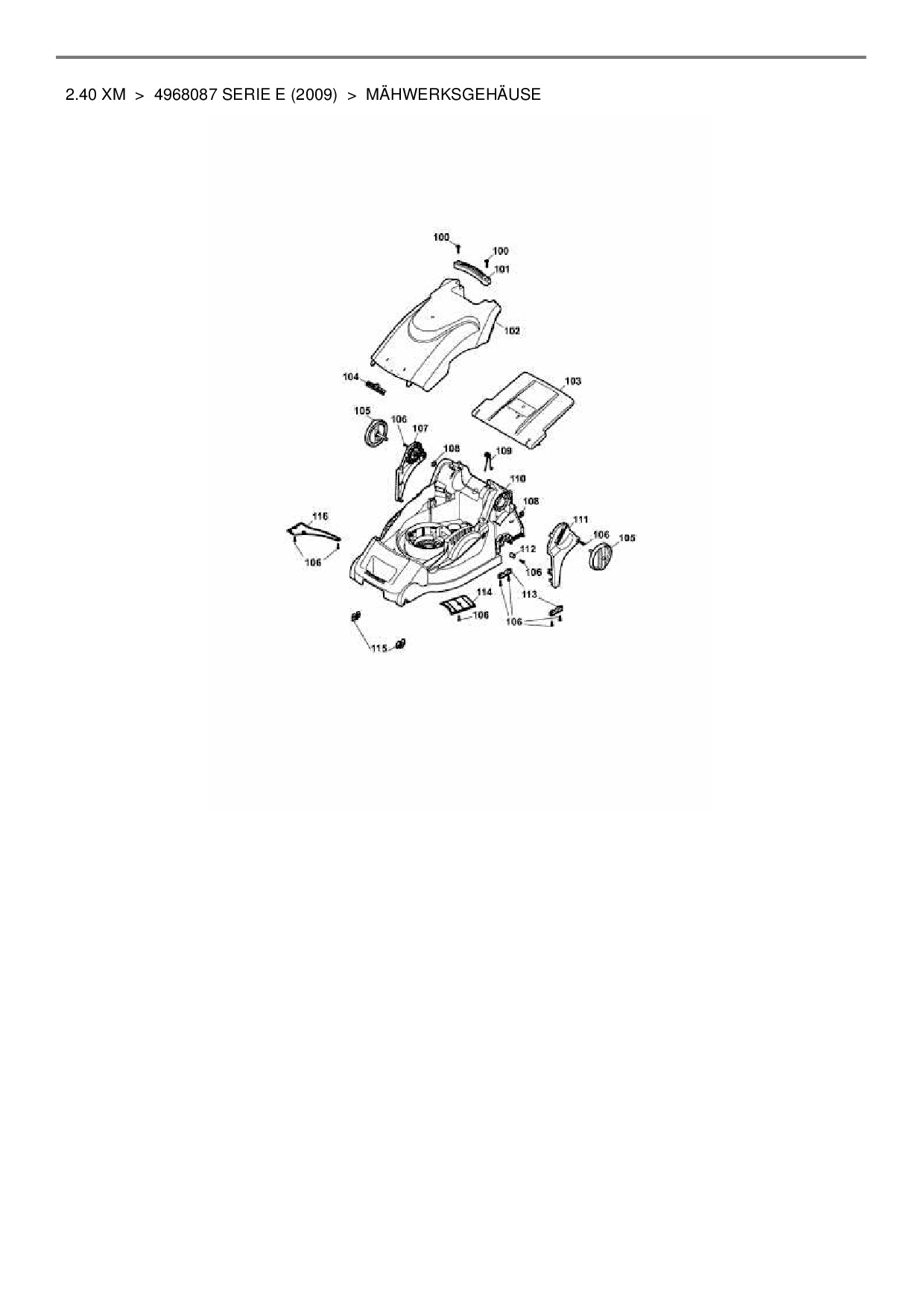 Ersatzteile für Elektromäher Wolf-Garten 2.40 XM aus der Zeichnung Mähwerksgehäuse: