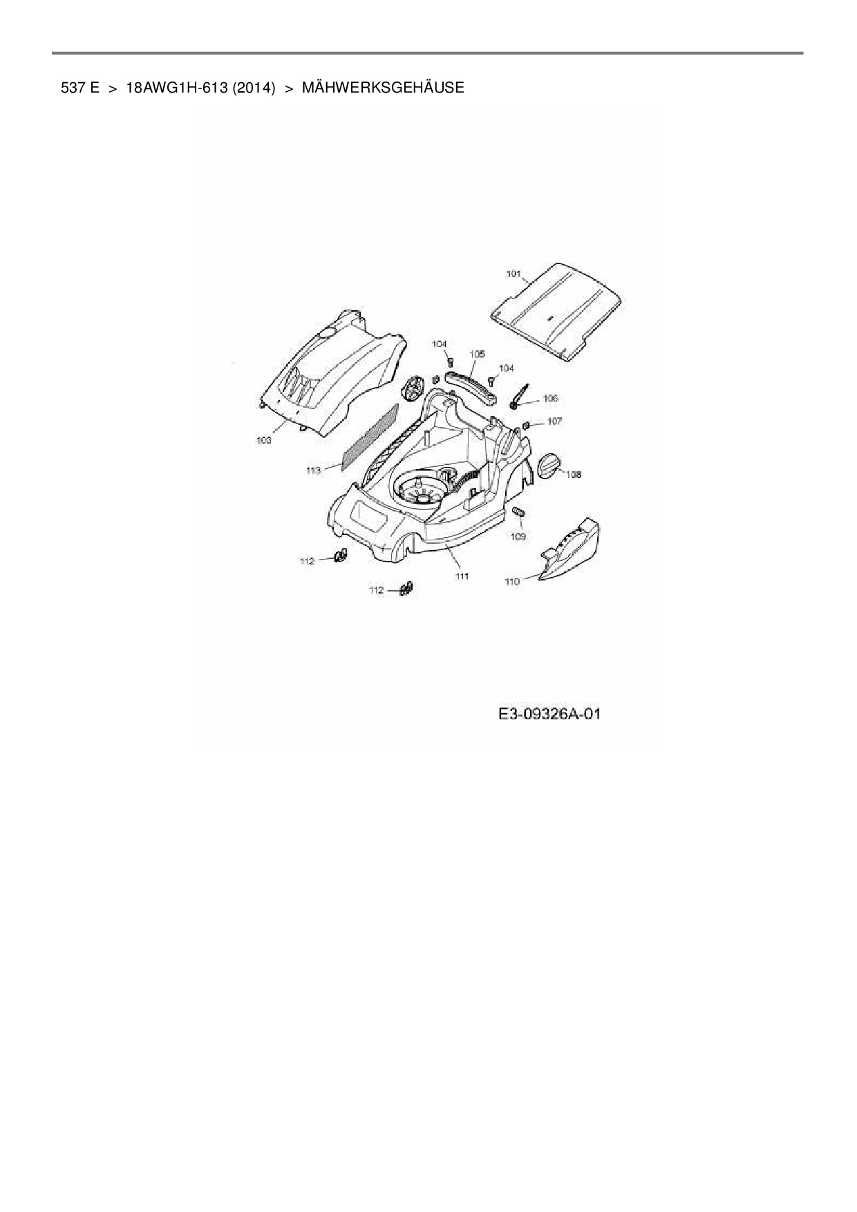 Ersatzteile für Elektromäher Wolf-Garten 537 E aus der Zeichnung Mähwerksgehäuse: