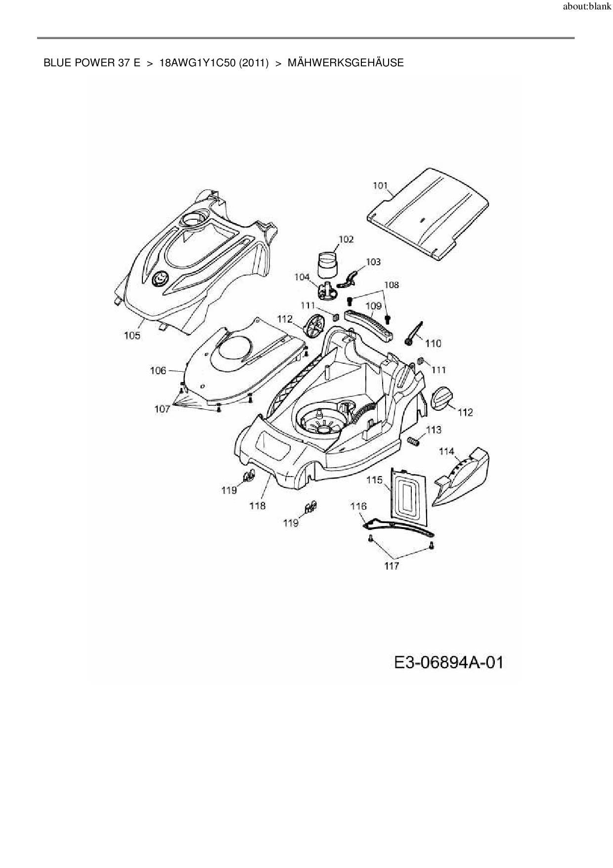 Ersatzteile für Elektromäher Wolf-Garten Blue Power 37 E aus der Zeichnung Mähwerksgehäuse: